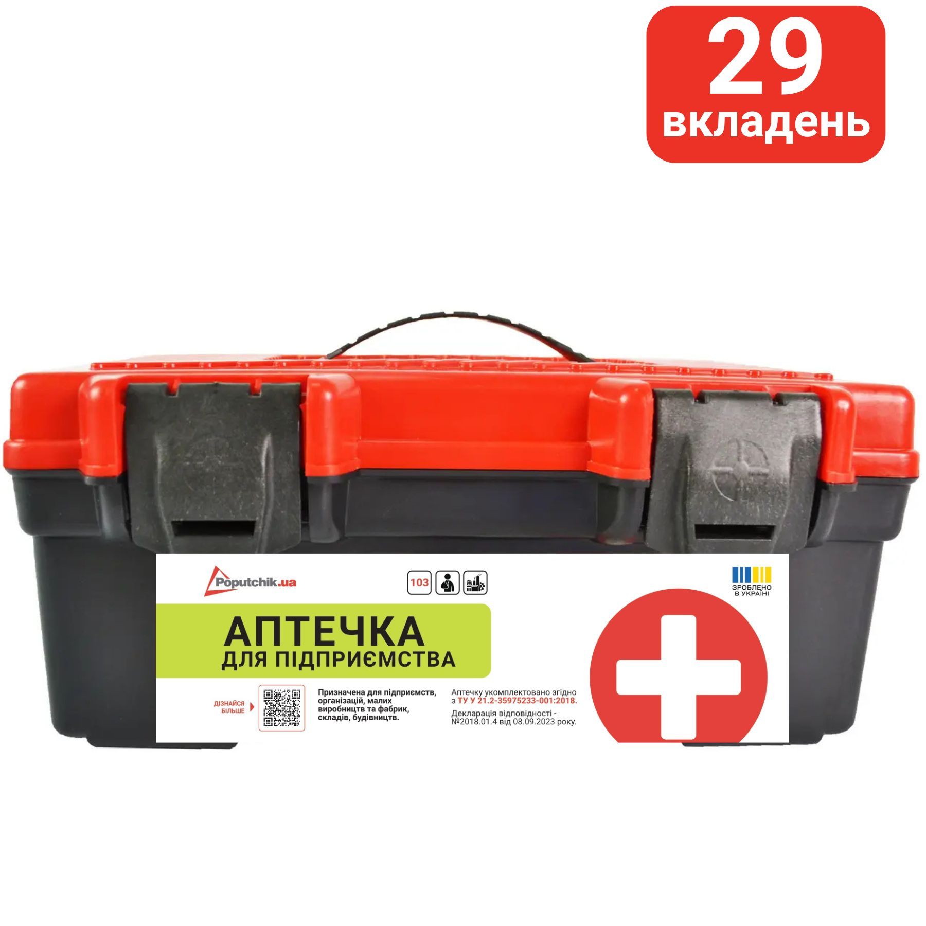 Аптечку укомплектовано згідно з ТУ У 21.2-35975233-001:2018.