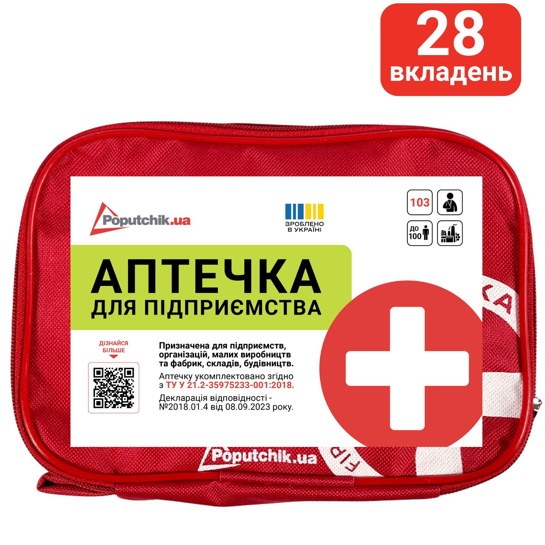 Аптечку укомплектовано згідно з ТУ У 21.2-35975233-001:2018.