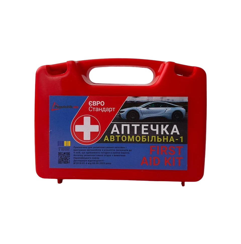Аптечка медична автомобільна Євростандарт згідно ТУ (02-005-П) Poputchik пластиковий футляр