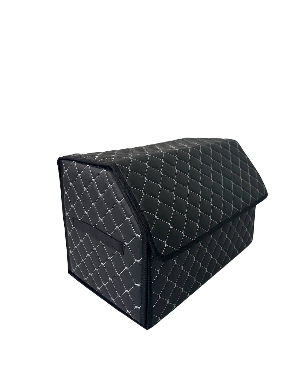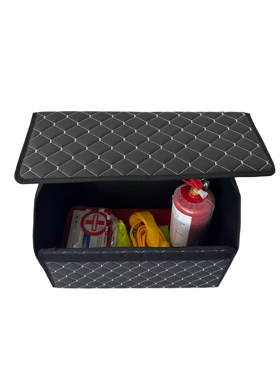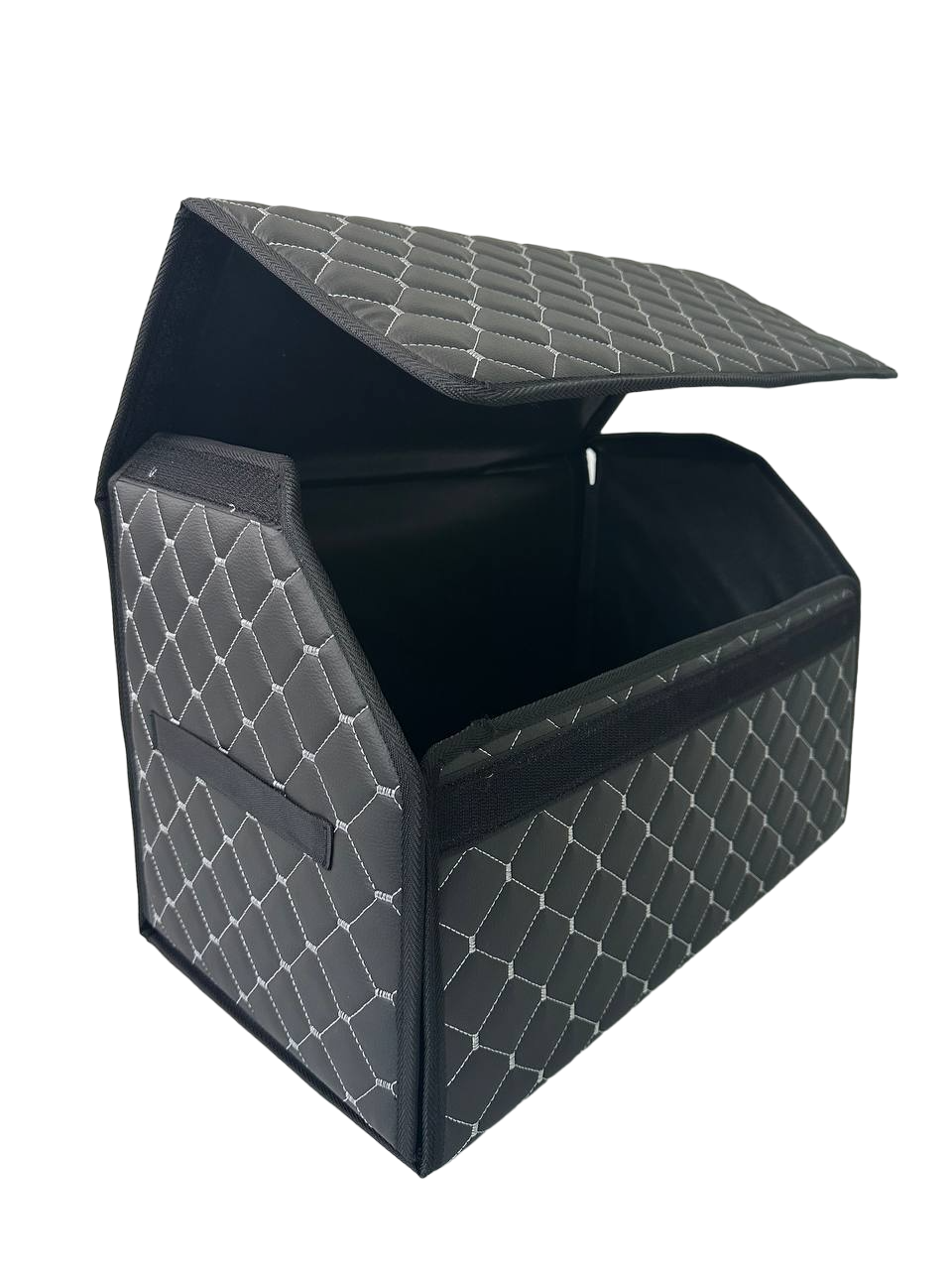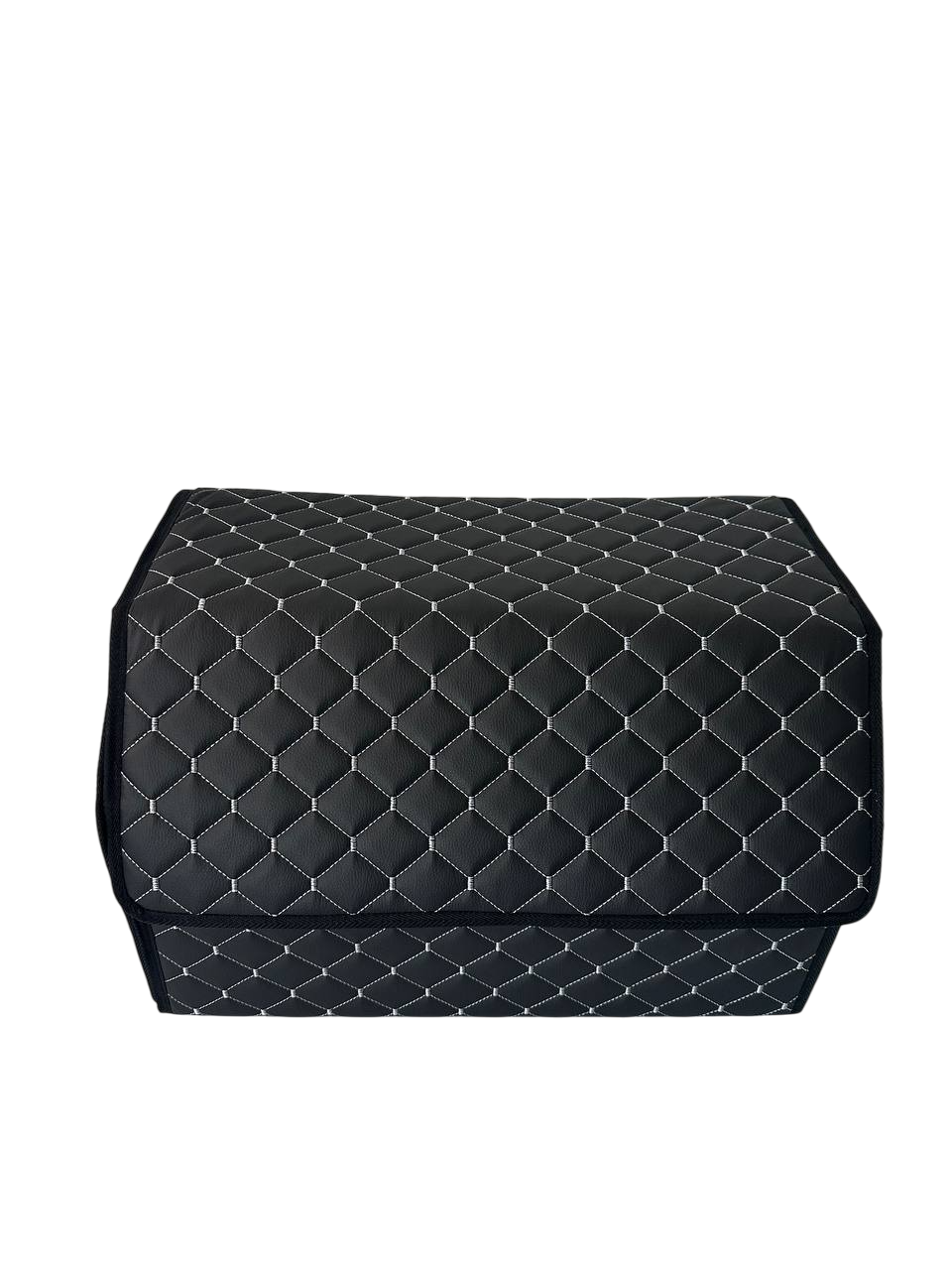 Автомобільний органайзер L з екошкіри у багажник 50х32х32 см чорний з сірою прошивкою (03-140-1Д)