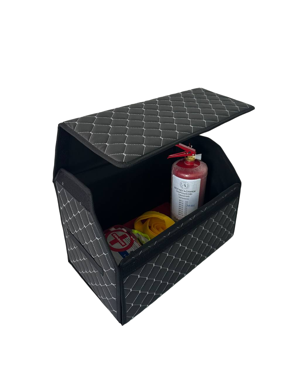 - На задній стінці має липучку для надійної фіксації в багажнику.