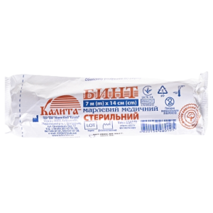 Бинт марлевий медичний стерильний для перев'язок, фіксації тампонів з вати і інших медичних виробів.