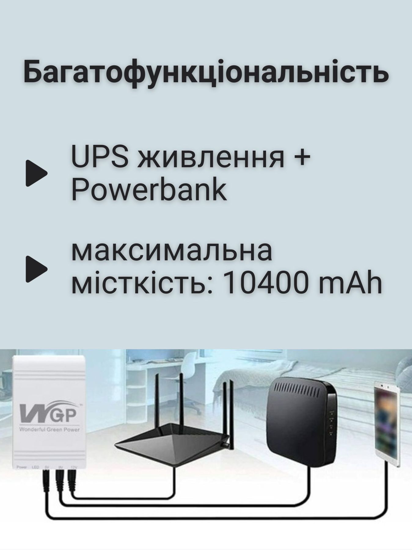 ДБЖ ПРОМО для роутера, повербанк MINI DC UPS WGP103 (10400mAh, 5V/9-12V)