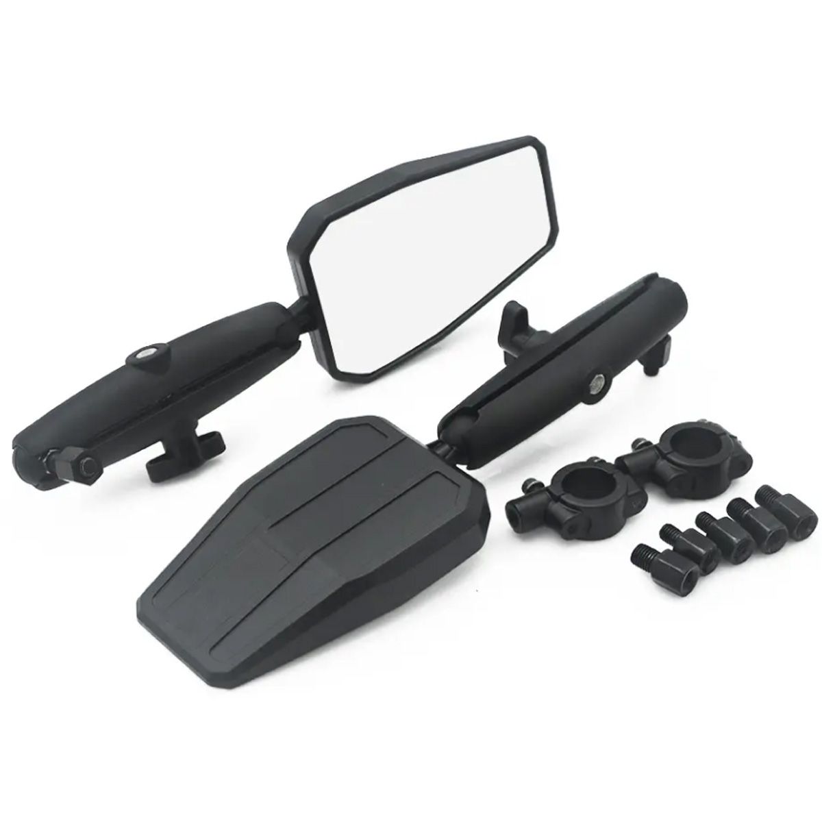Складні дзеркала, аналог Touratech, мають перехідники під 8 та 10мм різьблення, праве та ліве. Виготовлені з міцного пластику, мають омологацію, складаються для їзди по бездоріжжю, щоб уникнути ударів при падінні. Якісне лиття, міцні шарніри, не розбовтуються.