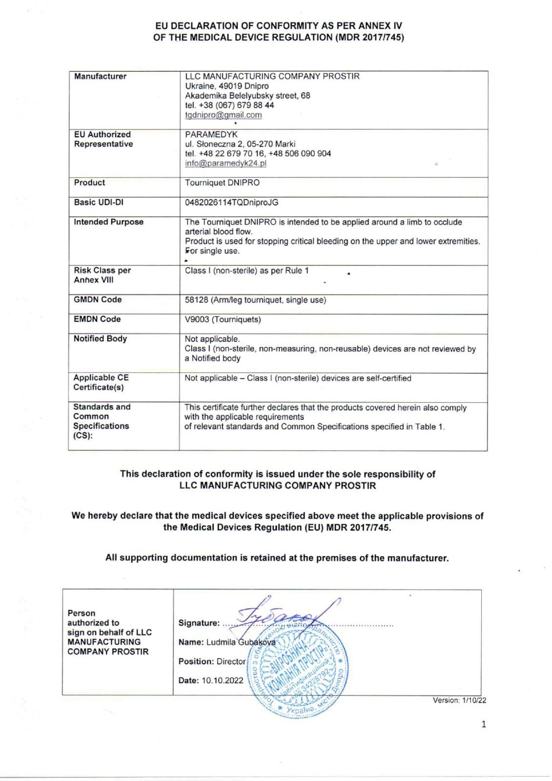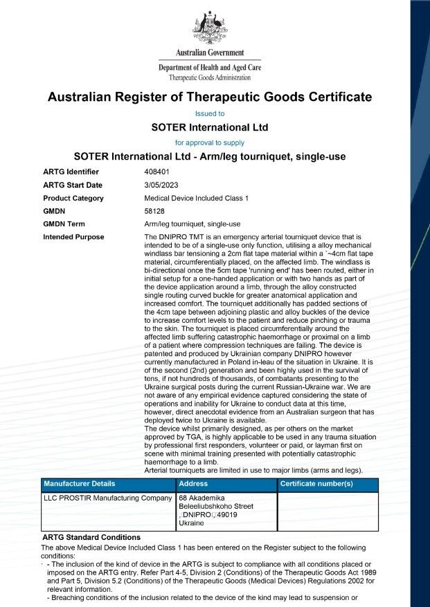 Область застосування: Для надання першої домедичної допомоги у медичних закладах, каретах швидкої допомоги, похідних умовах, під час воєнних дій та в інших екстремальних ситуаціях.