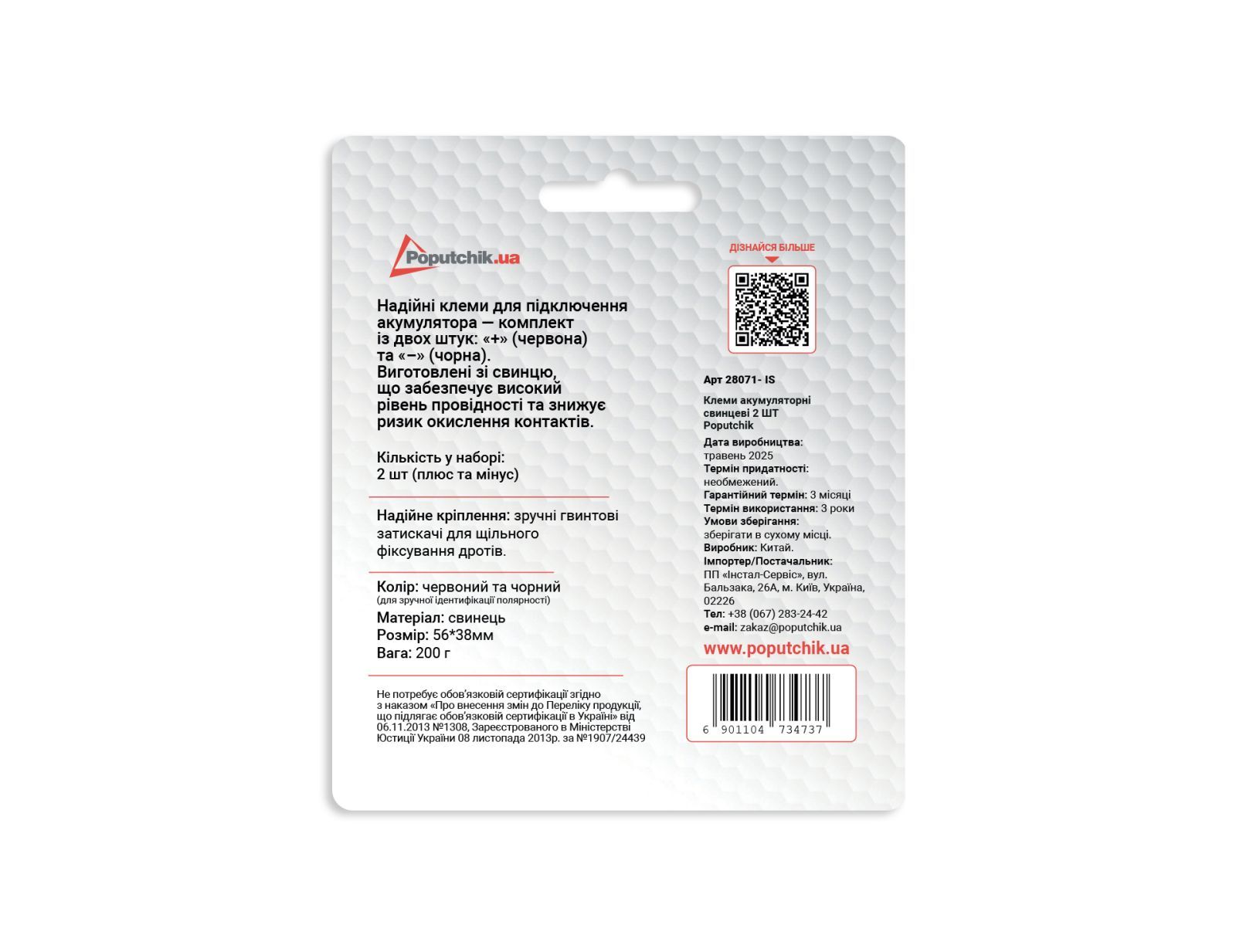Клеми акумуляторні свинцеві 2 шт Poputchik