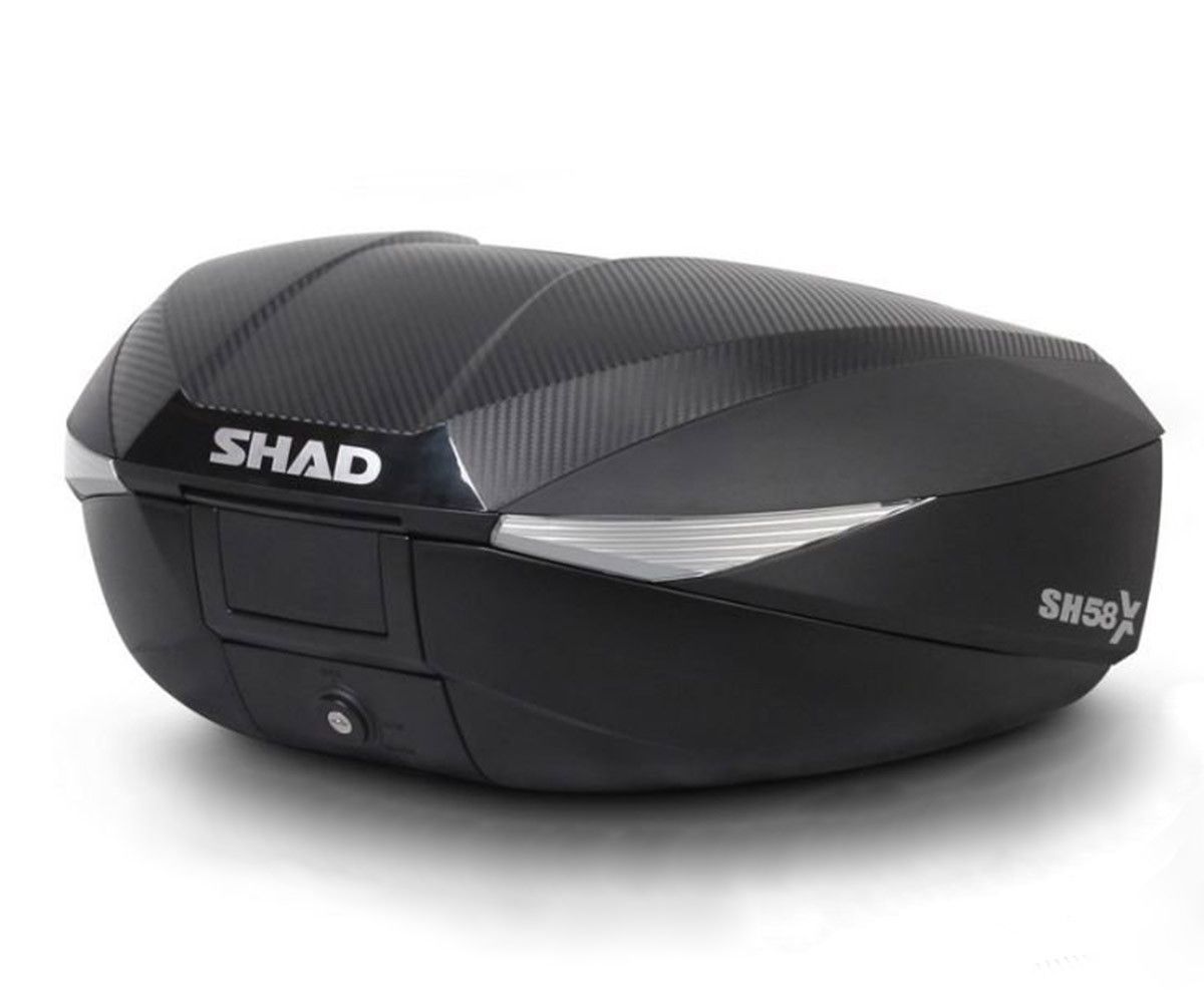 Розширюваний верхній кейс SH58X з карбоновим покриттям і регульованим об'ємом в 3 положеннях (46-52 і 58 літрів) може вмістити 2 ендуро-шолома без необхідності класти їх на бік, а також дорожні аксесуари. Передові технології та інноваційний дизайн розширюваного корпусу були відзначені престижною премією Reddot Design Award 2017, визнаної дизайнерами і виробниками. Це єдиний топ-кейс на ринку, регульований до 58 л, і він адаптований як для повсякденних потреб, так і для тих пригодницьких поїздок, про які ви завжди мріяли. Це дуже універсальний верхній кофр, так як, змінюючи його положення, він перетворюється з аеродинамічного верхнього корпусу у великій всього за кілька секунд. Його структурна рама гарантує високу жорсткість і стійкість при мінімальній вазі, а також включає внутрішні утримують ремені, щоб внутрішня навантаження не переміщалася.