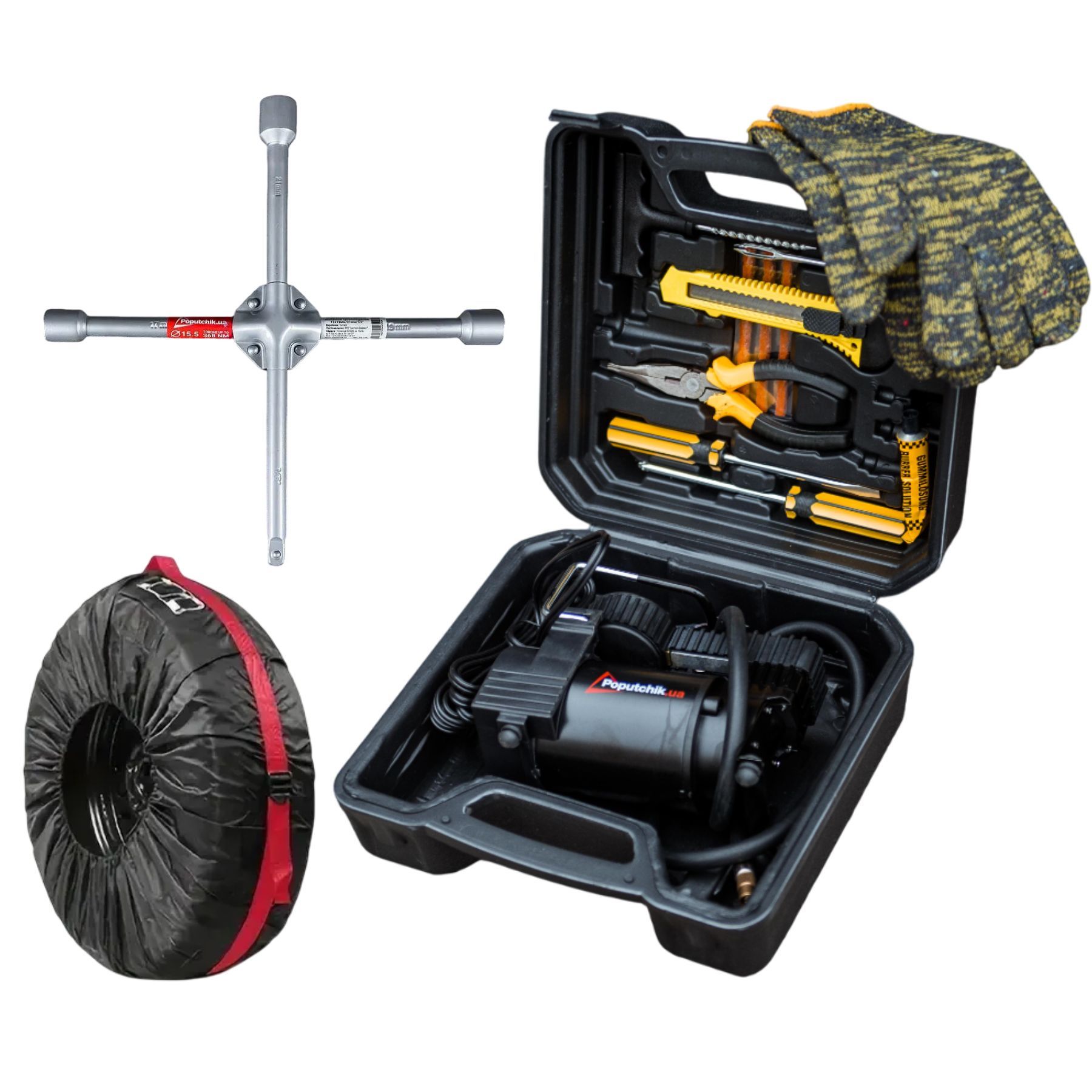 Набір Компресор 35 л/хв в кейсі + Чохол для коліс R14-17 + Ключ хрестоподібний – ТМ Poputchik