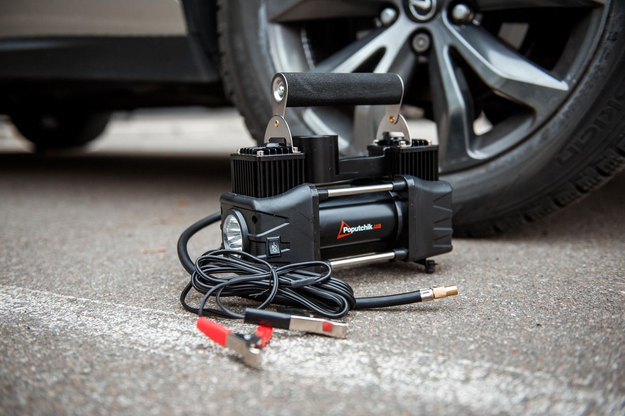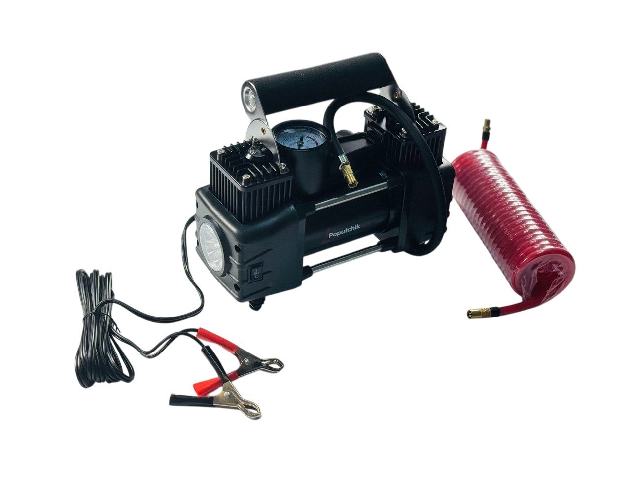 Компресор автомобільний 2х-поршневий Poputchik на 85л/хв, 10 АТМ з ліхтарем