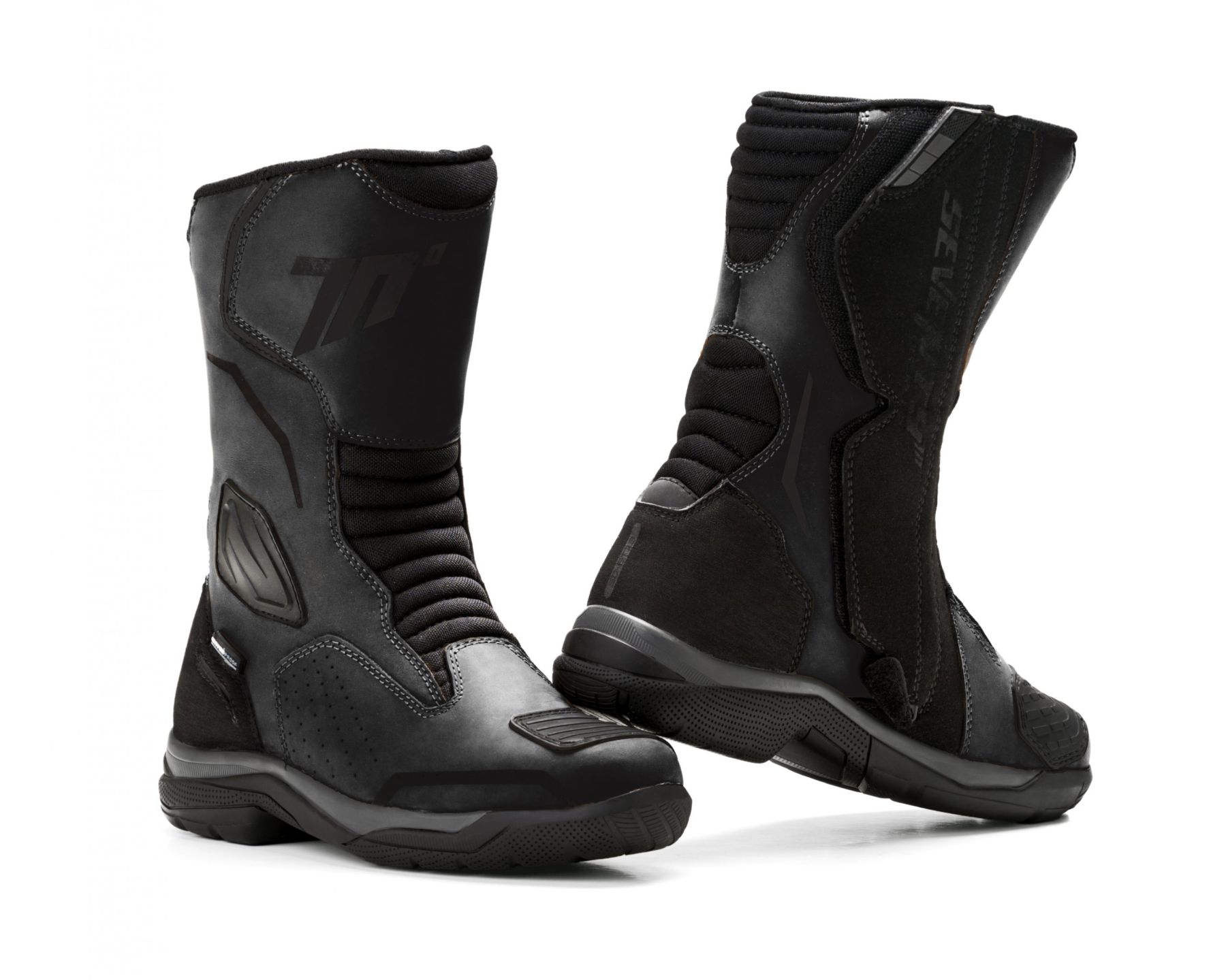 Водонепроникні туристичні черевики унісекс. Виготовлені зі шкіри з поліуретановою та нейлоновою обробкою. З м'якою внутрішньою підкладкою з мікро-дихаючої тканини. Захист гомілки, п'яти, щиколотки та пальців ніг із підсиленням супінатора для перемикання передач. Надміцні гнучкі точки для комфорту з максимальним захистом. Світловідбиваючі вставки в багатьох областях для підвищення видимості водія. Нековзна гумова підошва зі спеціальними зонами зчеплення. Знімна поролонова устілка.