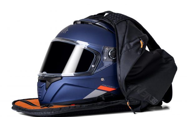 Практичний 28-літровий рюкзак із мінімалістичним та елегантним дизайном, призначений для носіння шолома та багато іншого. Основне відділення із застібкою-блискавкою для доступу ззаду, з місцем для шолома, що закриває обличчя, відкривається ззаду з дуже широким доступом. Він також має клапан-роздільник для документів, ноутбука чи планшета та кишеню на блискавці. Велика передня кишеня для інших речей. Виготовлений з водонепроникного ламінованого PU поліестеру на блискавках, водонепроникний. Плечові лямки, що швидко регулюються. Нагрудний ремінь також регулюється по висоті. Помаранчевий водонепроникний чохол і світловідбиваючі деталі. М'яка та вентильована спинка та плечові лямки для максимального комфорту під час руху. Застібки-блискавки для легкого відкриття в рукавичках.