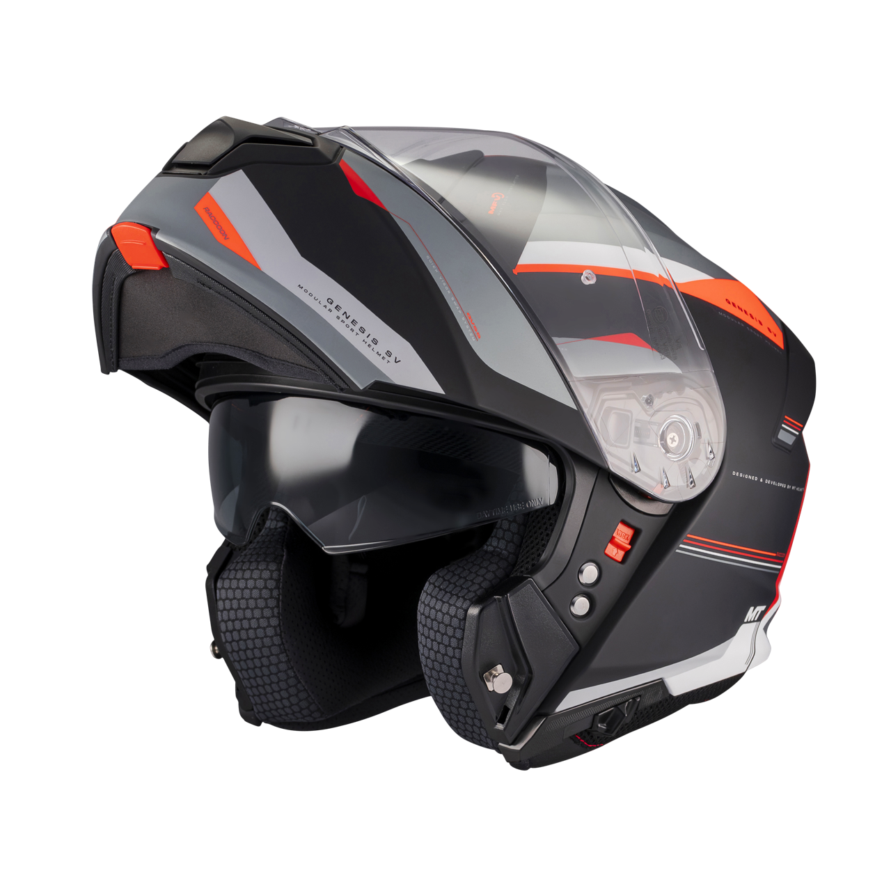 MT Genesis SV – новий модуляр від MT Helmets, що поєднує сучасні технології, комфорт і безпеку за доступною ціною. Завдяки оновленому дизайну, автоматичній системі закриття візора та сонцезахисним окулярам, цей шолом ідеально підходить як для міських поїздок, так і для туристичних подорожей.