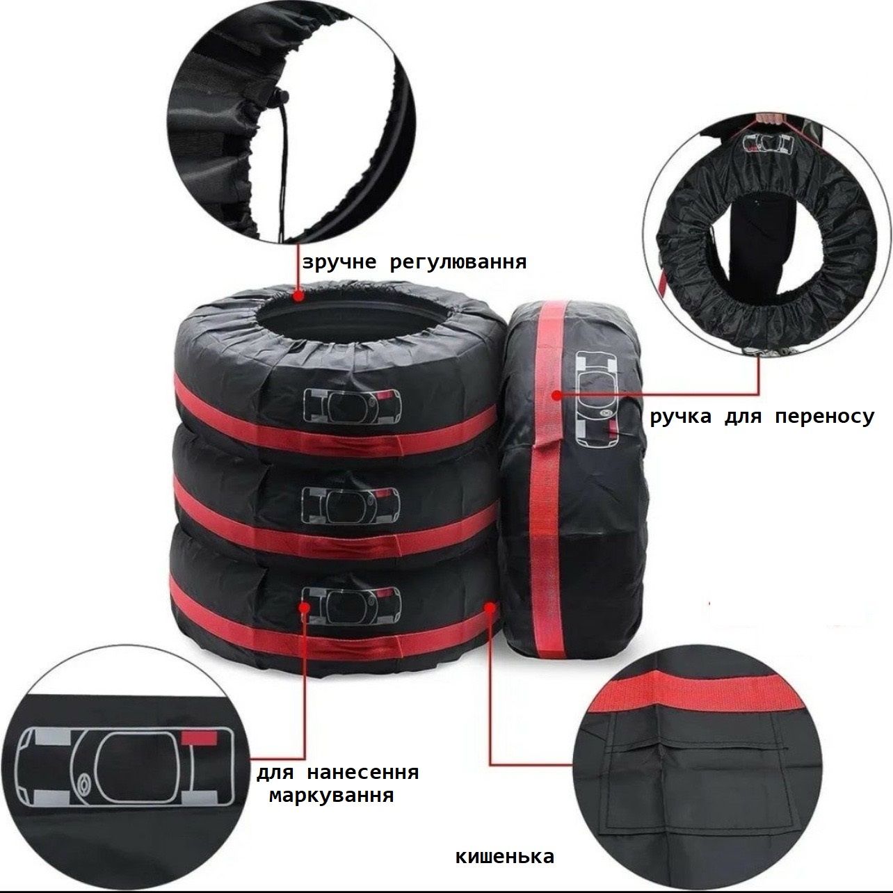 Набір чохлів Poputchik для коліс R14-17 – ідеальне рішення для зберігання та транспортування коліс. Виготовлені зі зносостійкого поліестеру, вони забезпечують захист шин від негативного впливу сонячного проміння та механічних пошкоджень.