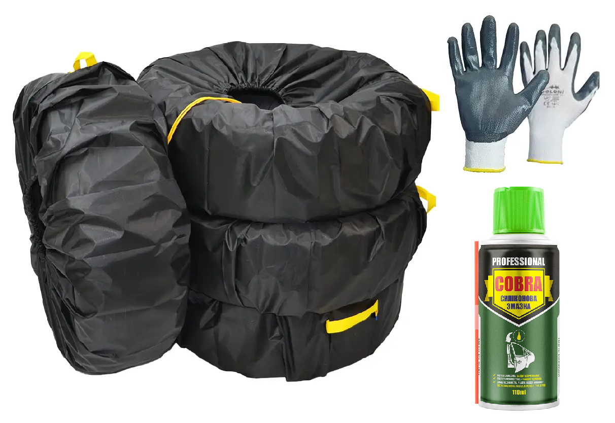 Набір чохлів для коліс з рукавицями та силіконовою змазкою (M) R14-15 (4 шт)