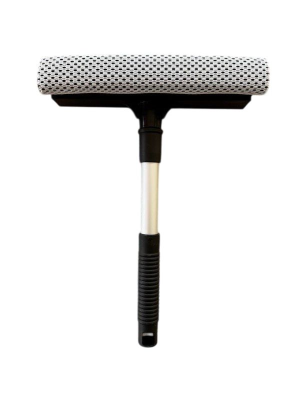 Губка-стяжка – м’яка губка видаляє бруд, гумова стяжка ефективно прибирає залишки води. Розмір: 21×28 см.
