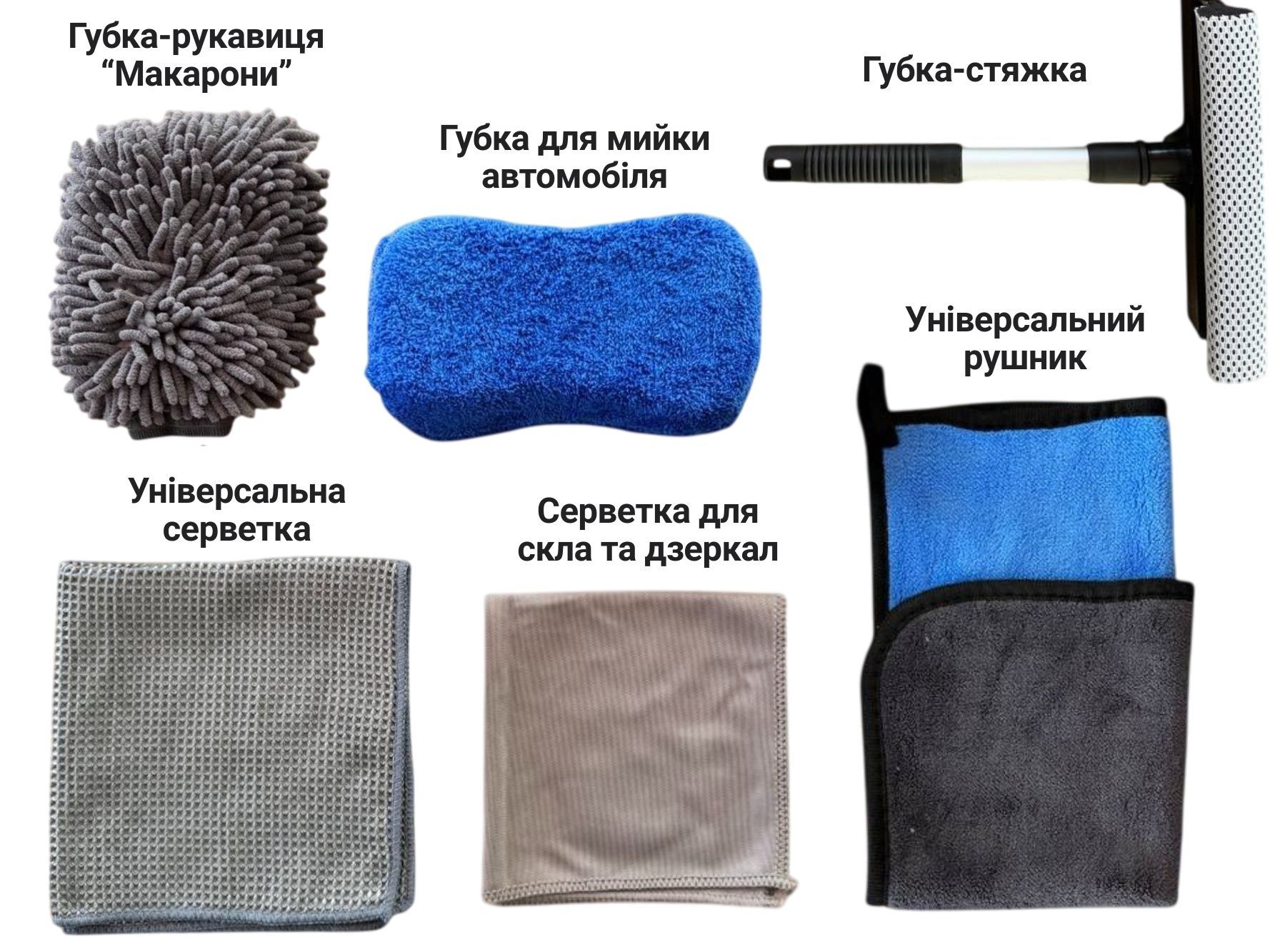 Набір для мийки та догляду за автомобілем 6 шт Poputchik