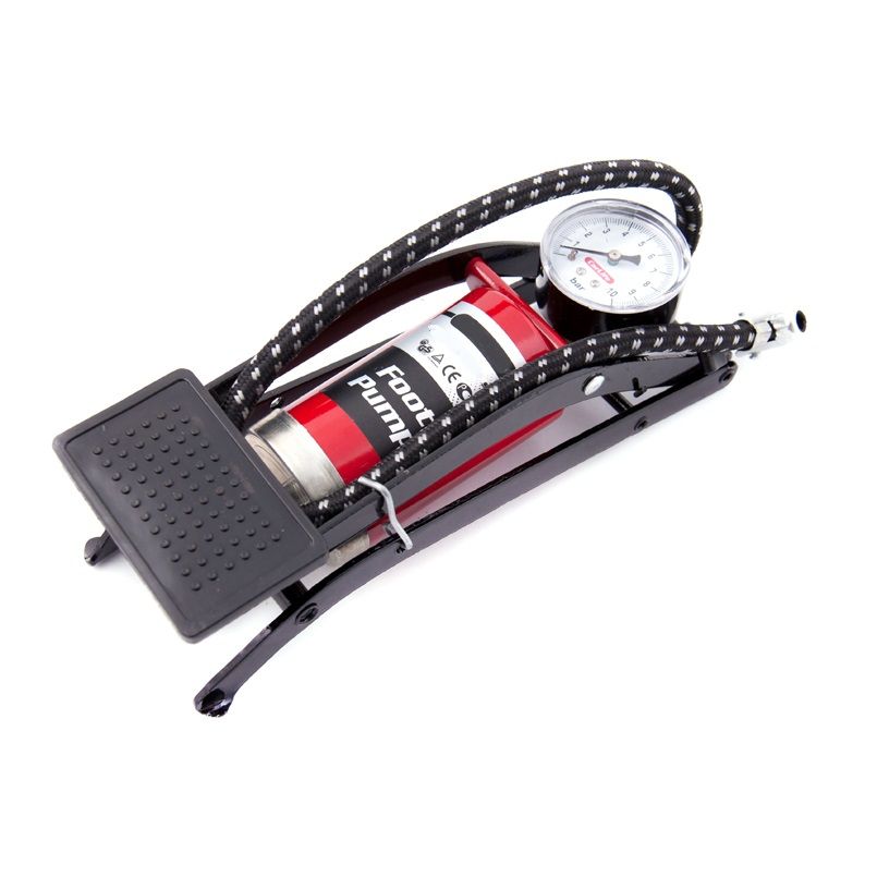 Ножний насос – надійний та зручний інструмент для накачування автомобільних і велосипедних шин, гумових виробів, спортивного інвентарю. Оснащений вбудованим манометром для точного контролю тиску та додатковими адаптерами для універсального використання.