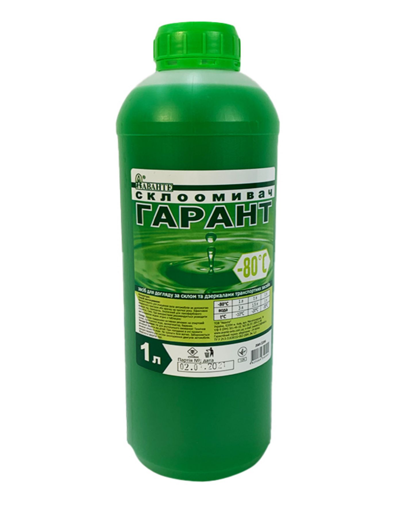 Високоякісний зимовий склоочисник "ГАРАНТ" забезпечує захист бачка омивача від морозу. Видаляє всі типові для зими забруднення та забезпечує відмінну видимість. Запобігає замерзанню бачка омивача та форсунок. Забезпечує захист від замерзання до температури -80 °C 1 літр.