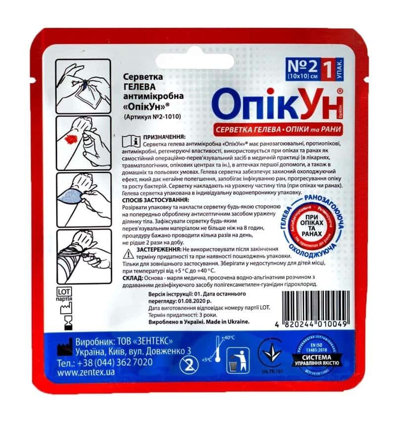 Пов'язка гелева антимікробна " ОпікУн " (10 х 10 см) №2 51-101-IS