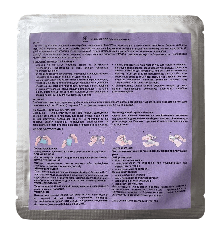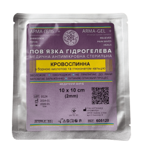 Кровоспинна гідрогелева пов’язка «АРМА-ГЕЛЬ+» забезпечує ефективний догляд за ранами та сприяє їх швидкому загоєнню.