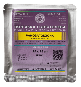 Гідрогелева ранозагоювальна пов’язка «АРМА-ГЕЛЬ+» з метилурацилом, 10×10 см