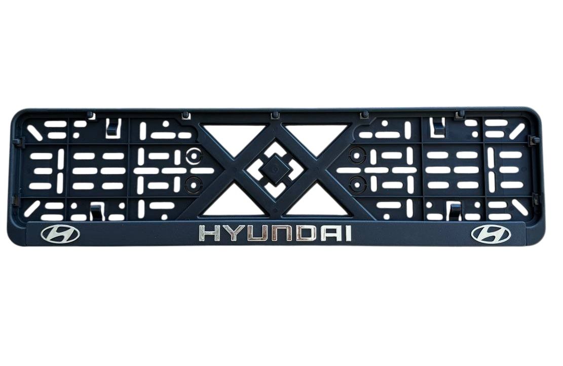Рамка номерного знаку з логотипом автоконцерну Hyundai, яка доповнить зовнішній вигляд автомобіля та відповідатиме вподобанням автовласника, дозволить зручно і надійно зафіксувати на бампері або кришці багажника держномери.