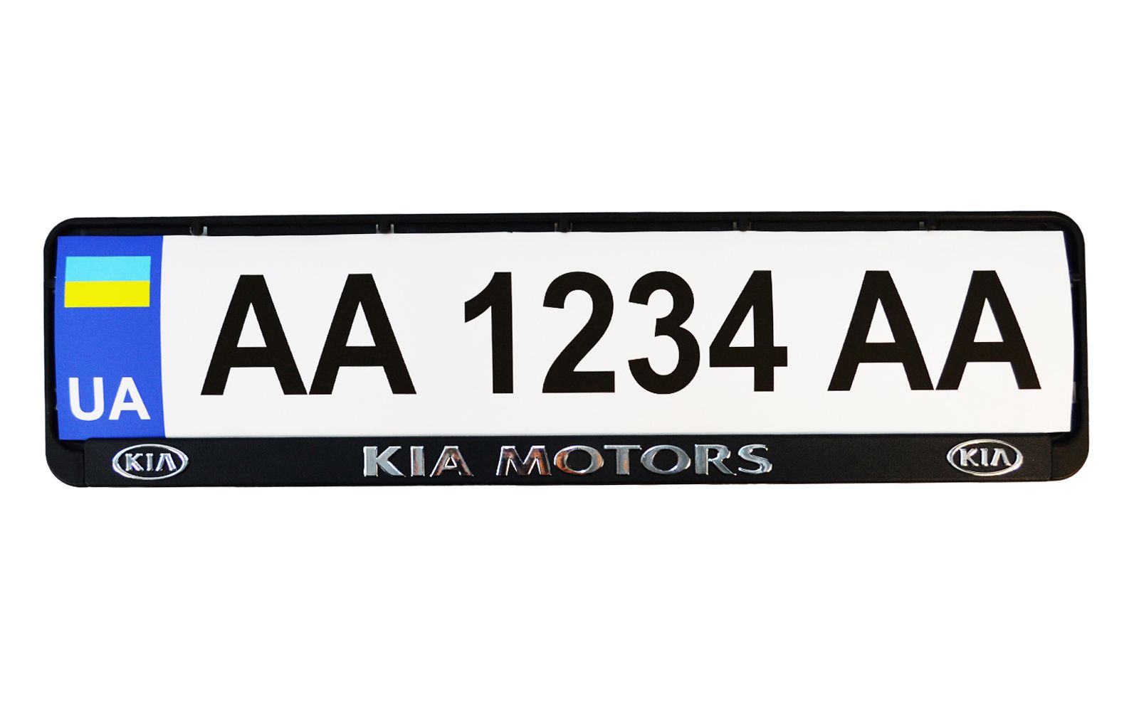 Рамка номерного знаку з логотипом автоконцерну КІА, яка доповнить зовнішній вигляд автомобіля та відповідатиме вподобанням автовласника, дозволить зручно і надійно зафіксувати на бампері або кришці багажника держномери.