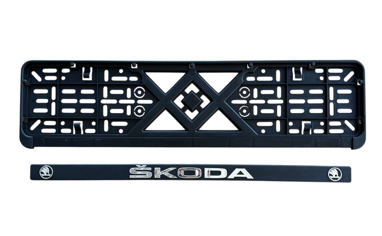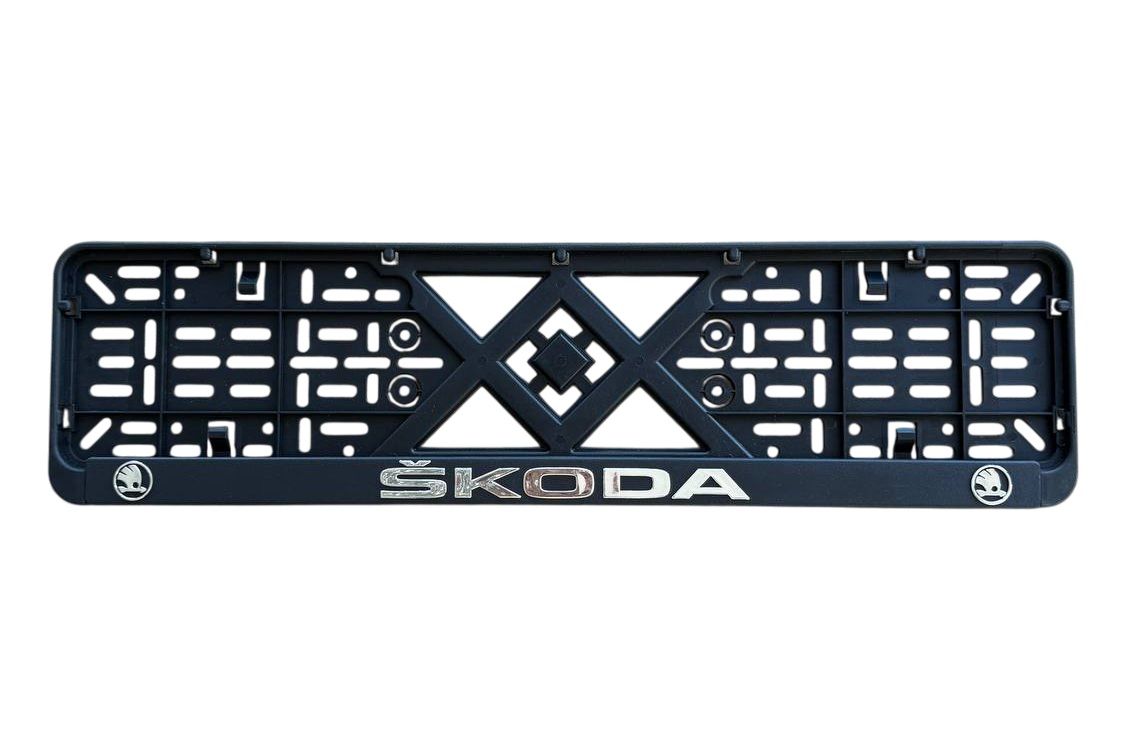 Рамка номерного знаку з логотипом автоконцерну Škoda, яка доповнить зовнішній вигляд автомобіля та відповідатиме вподобанням автовласника, дозволить зручно і надійно зафіксувати на бампері або кришці багажника держномери.