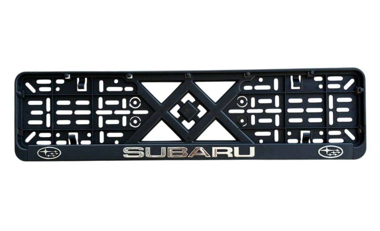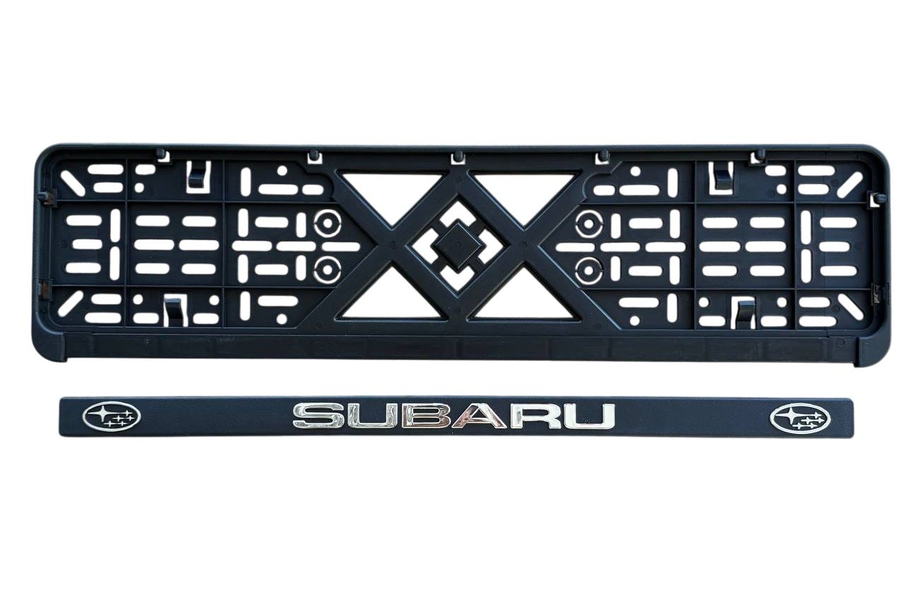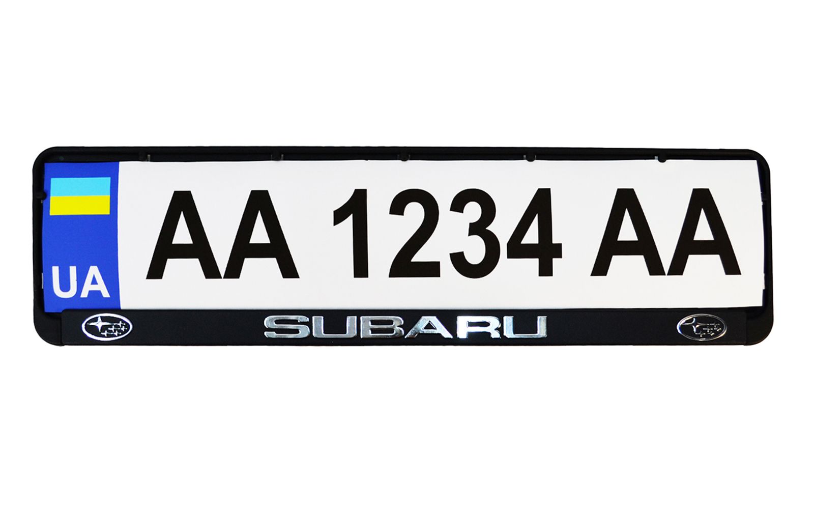 Рамка номерного знаку з логотипом автоконцерну Subaru, яка доповнить зовнішній вигляд автомобіля та відповідатиме вподобанням автовласника, дозволить зручно і надійно зафіксувати на бампері або кришці багажника держномери.