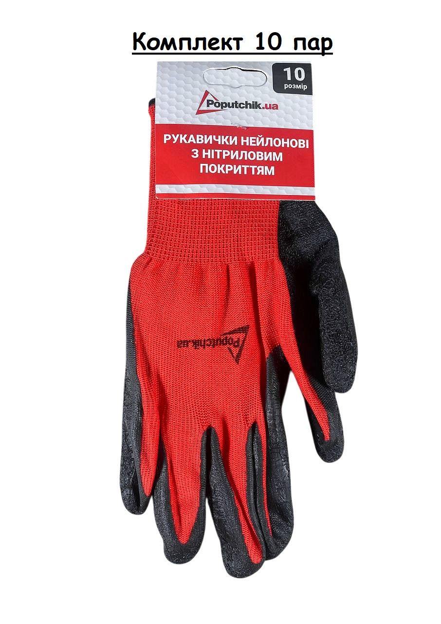 Рукавички нейлонові з нітриловим покриттям, Poputchik, розмір 10 (10 пар)
