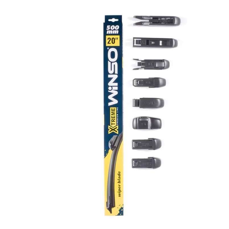 Winso XTREME – це безкаркасні склоочисники преміум-класу зі всіма типами адаптерів у комплекті, які підходять для 99% автомобілів. Конструкція безкаркасних склоочисників XTREME забезпечує рівномірне прилягання їх до вітрового скла незалежно від його форми. Аеродинамічний спойлер забезпечує високу ефективність очищення на великій швидкості.Гумове лезо склоочисників Winso XTREME виготовлено з багатокомпонентних елементів високої якості із додаванням натурального каучуку. Графітове покриття сприяє безшумній роботі та експлуатації протягом тривалого часу.Склоочисники Winso XTREME виготовлені з дотриманням високих стандартів якості. Стійкі до негативного впливу зовнішнього середовища, зберігають свої властивості за будь-яких погодних умов.