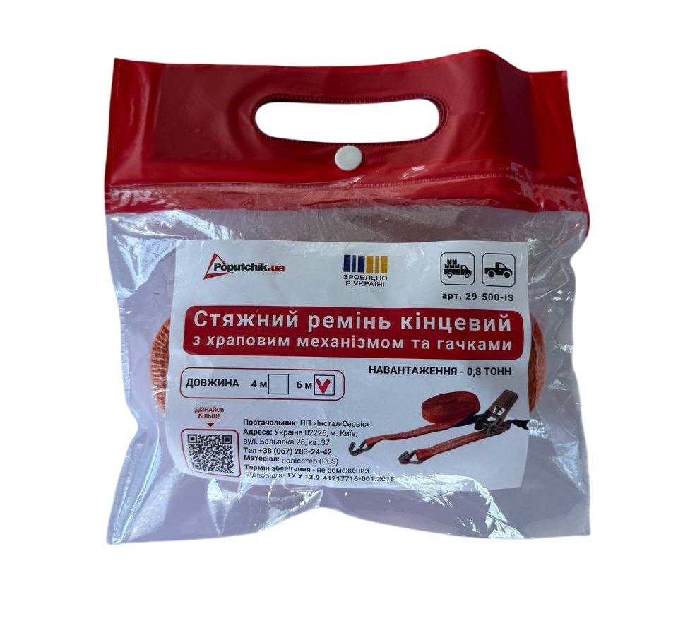 Надійний стрічковий ремінь із храповим (швидкозажимним) механізмом призначений для безпечної фіксації багажу при транспортуванні на будь-якому типі транспорту. Завдяки регульованій довжині 6 метрів він підходить для кріплення вантажів різного об'єму та форми. Храповий механізм забезпечує міцну фіксацію без ризику ослаблення в дорозі.