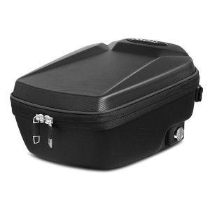 E09C Сумка-бак Click System, 9 літрів (2 кг завантаження). Розроблено в Барселоні. Система кріплення Click System (заявка на патент) забезпечує легку та швидку установку сумки. Зняття дійсно зручне завдяки вбудованій кнопці. Система забезпечує ідеальну естетичну інтеграцію в бак мотоцикла. Виготовлено з ABS, що відповідає екологічним нормам REACH і витримує до 1000 годин ультрафіолетового випромінювання. Кожна сумка E09C включає дощовик. Чохол має роздільну сіточку, яка відкривається за допомогою блискавки та дозволяє організувати. Він має застібки-блискавки, які можна закривати на навісні замки, адаптовані навіть у рукавичках. Він включає в себе ручку для перенесення, плечову ручку і світловідбиваючі елементи для підвищення видимості при зустрічі з іншими автомобілями. Встановлення комплекту кріплення Потрібна система Click System. Аксесуар (не входить в комплект): механізм замка з 2 ключами в комплекті (X1SESTLR).