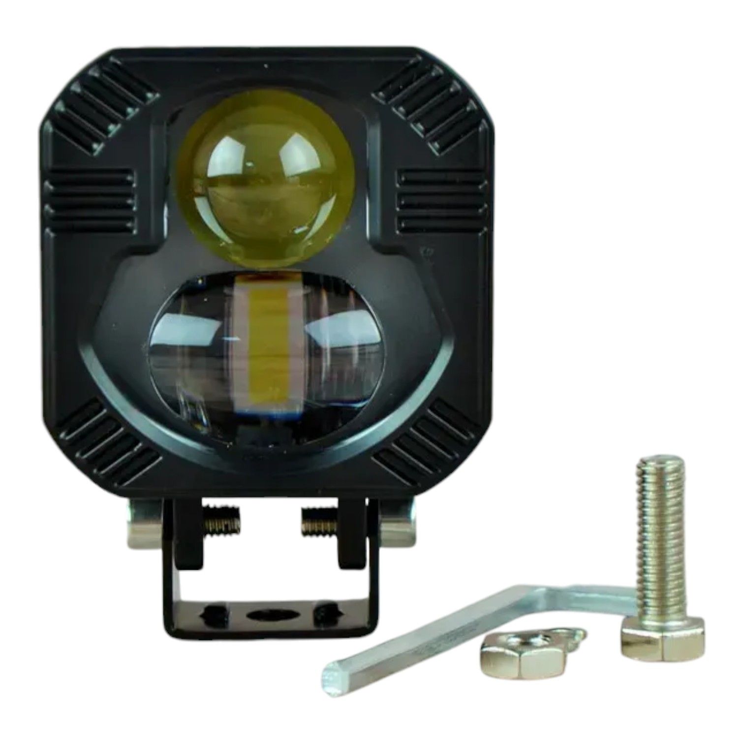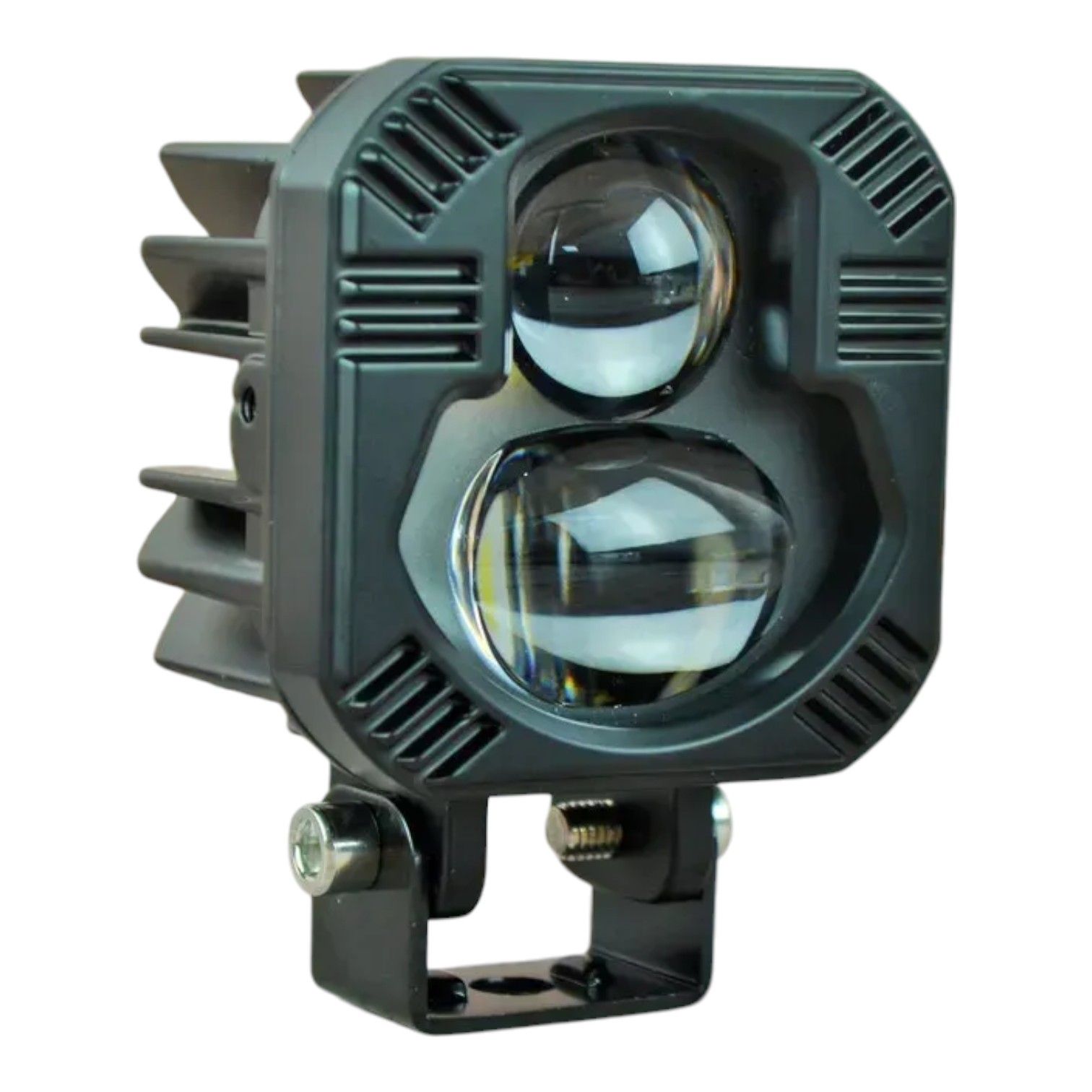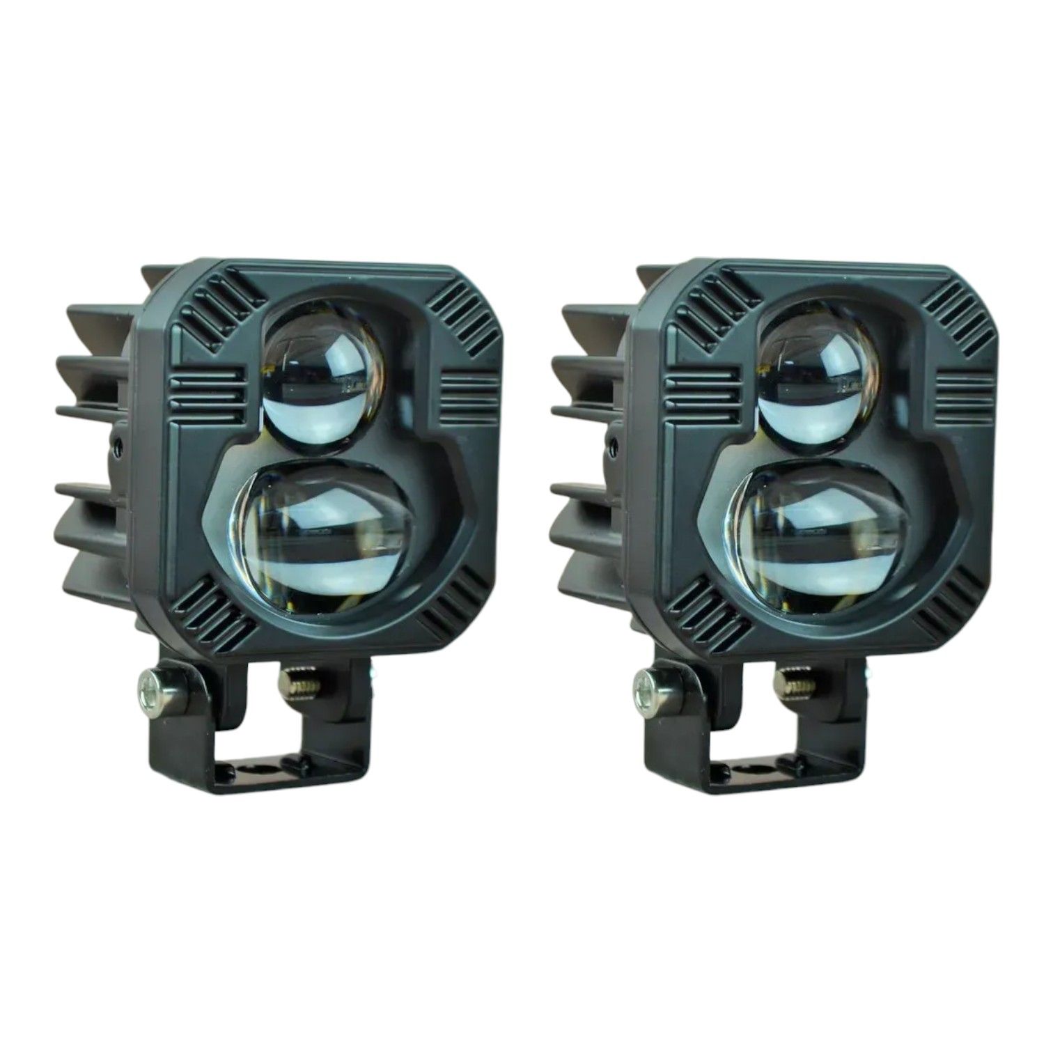 Комплект из 2-х светодиодных линзовых фар ACS-CD16 LED обеспечивает яркое и равномерное освещение дороги в любых условиях. Фара имеет квадратную форму и поддерживает два режима работы: ближний (белый) и дальний (белый), что делает её универсальным решением для дополнительного автомобильного освещения.