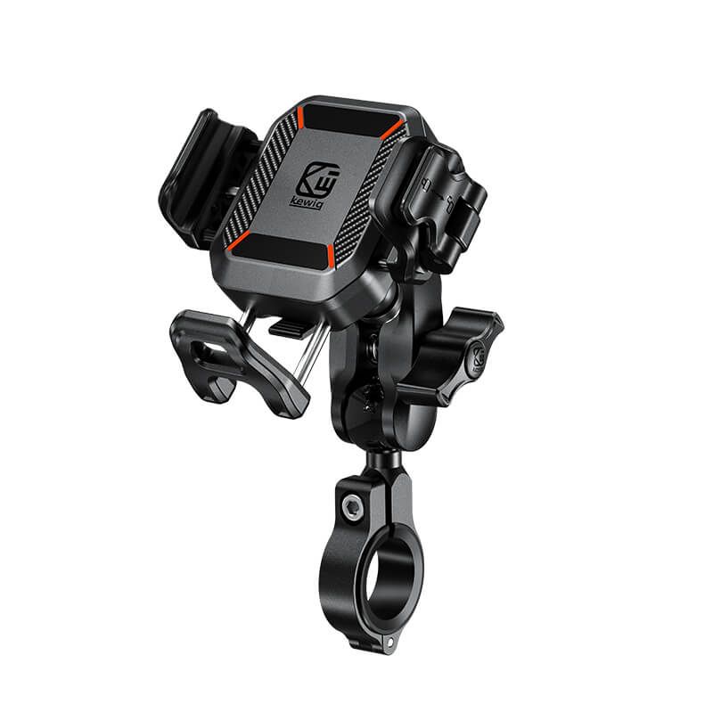 Тримач на кермо з антивібраційним демпфером для збереження стабілізації на камері смартфона. Демпфер поглинає більшість вібрацій та зменшує вплив на камеру. Дуже міцна модель з великою кількістю регулювань. Тримач зручний для встановлення телефона однією рукою. Має кріплення під дзеркало чи болт, докупивши перехідник R27-A, можна встановити на спортбайк з кліпонами у вісь рульової колонки.