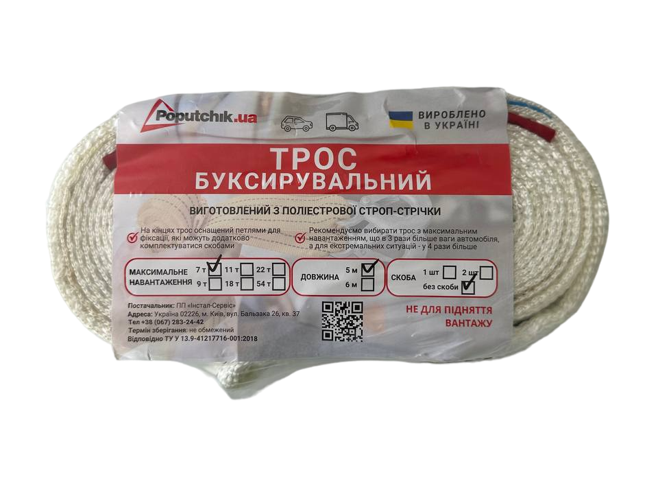 Трос буксирувальний POPUTCHIK 7 т 5 м петля-петля