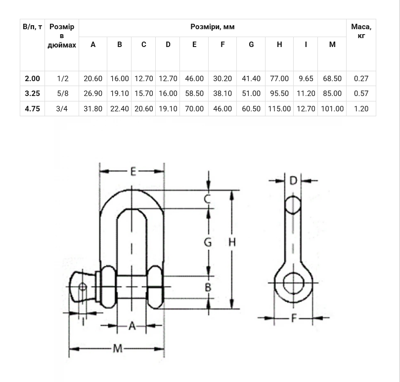 - Тип кріплення - скоба-скоба. Скоби G210 3,25 т під "Гвинт"