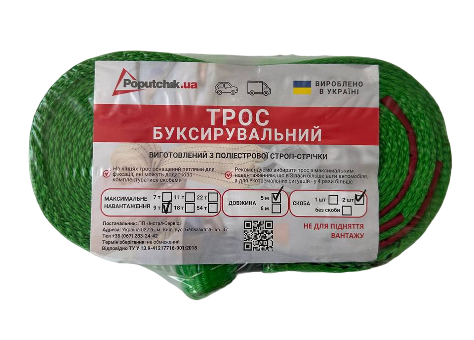 Трос буксирувальний зі скобами POPUTCHIK 9 т 5 м