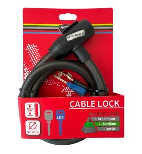 Велозамок тросовий Ø15 x 1200мм 2 ключа, 1 ключ - ліхтар "PREMIUM SECURITY"