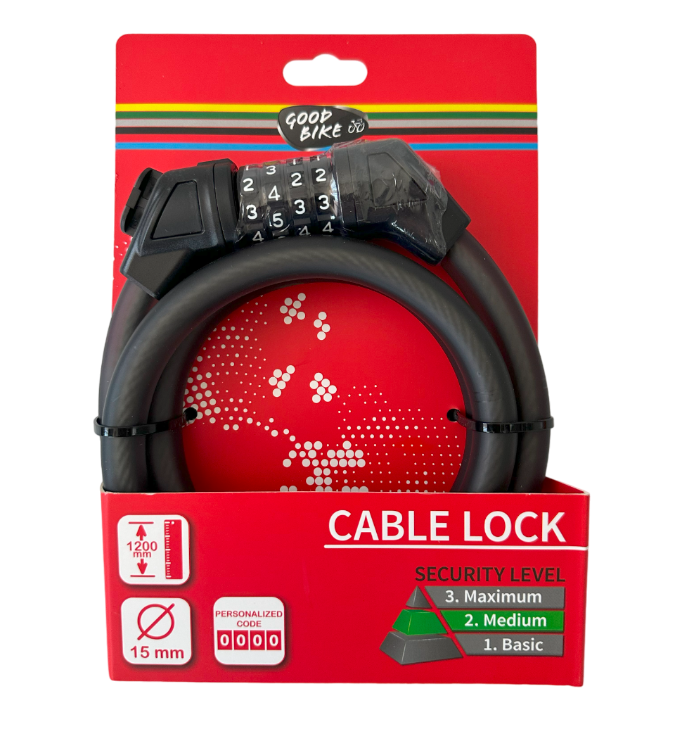Тросовий замок для велосипеда надійно закривається і робить ваше паркування безпечним.
