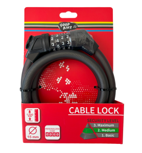 Велозамок тросовий кодовий Ø15 x 1200 мм чорний "PREMIUM SECURITY" (97010-IS)