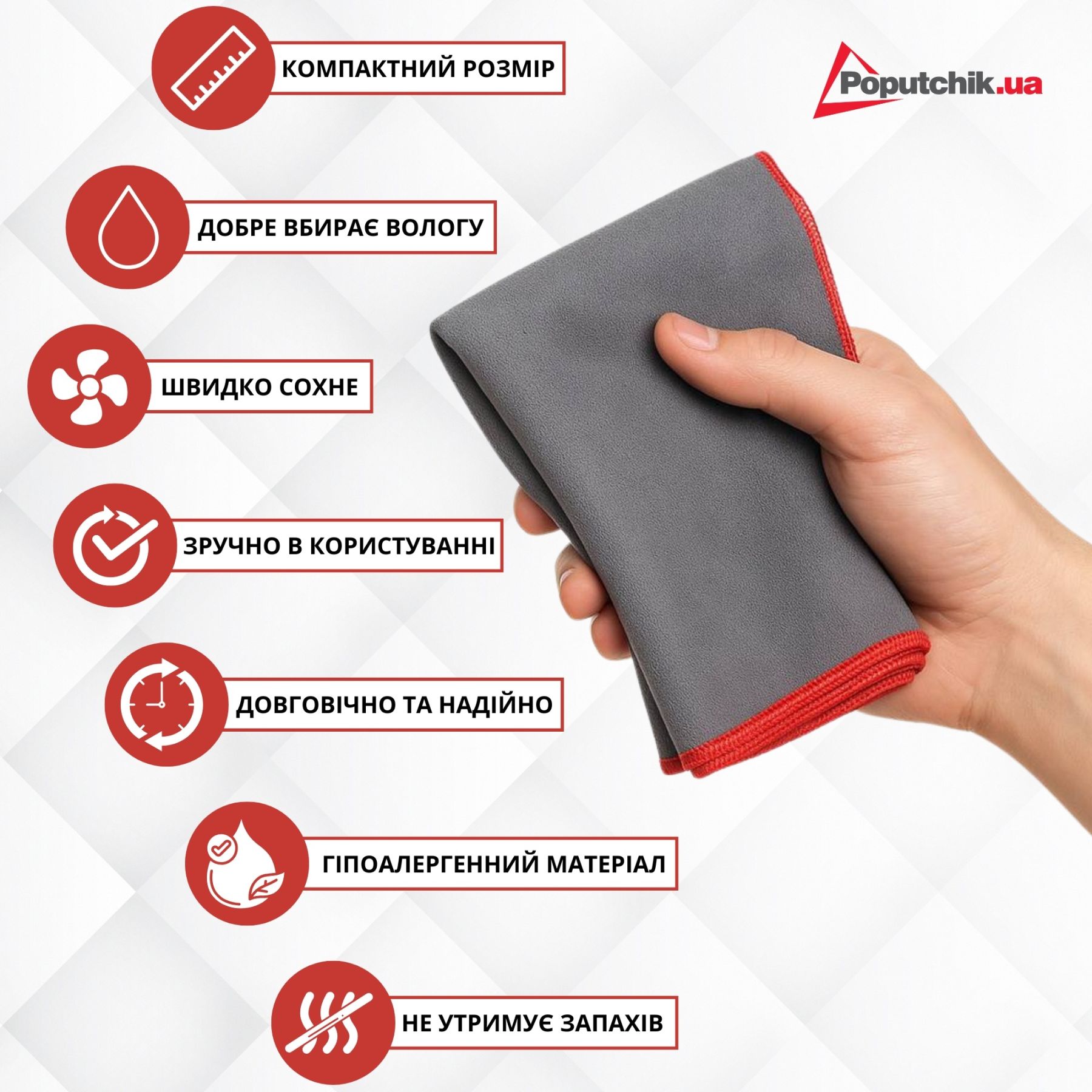 Вологопоглинаючий універсальний рушник 40*70 см Poputchik