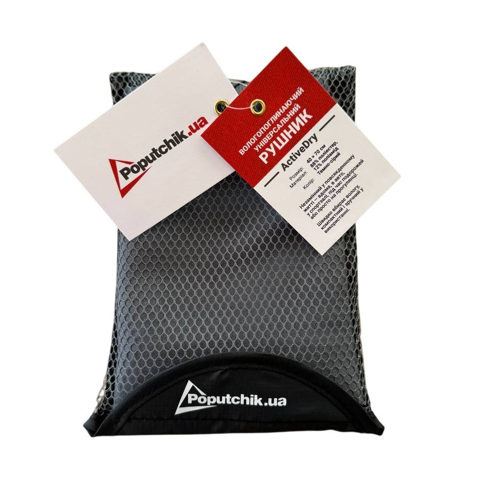 ActiveDry – компактний та практичний рушник, який стане незамінним у спорті, подорожах, авто чи вдома. Завдяки особливій структурі м’якого флісу він швидко вбирає вологу, залишається приємним до тіла та легко складається у зручний футляр на липучці. Це дозволяє завжди мати рушник під рукою й зберігати його акуратно навіть у невеликій сумці чи рюкзаку. Унікальність ActiveDry полягає в поєднанні високої поглинальної здатності, швидкого висихання та компактності. На відміну від звичайних рушників, він не займає багато місця, не накопичує неприємні запахи, а завдяки футляру з липучкою завжди залишається чистим і готовим до використання навіть у дорозі. Окрім того, футляр має петлю, щоб його можна було підвісити для зручного зберігання чи швидкого просушування.