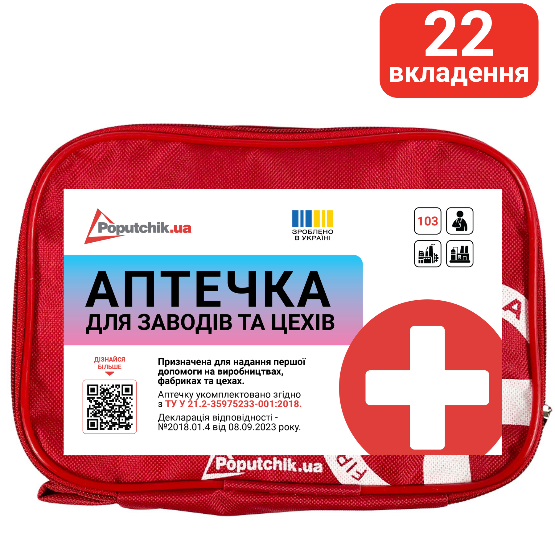 Аптечка медична "Для заводів та цехів" до 10 робітників згідно ТУ У 21.2-35975233-001:2018