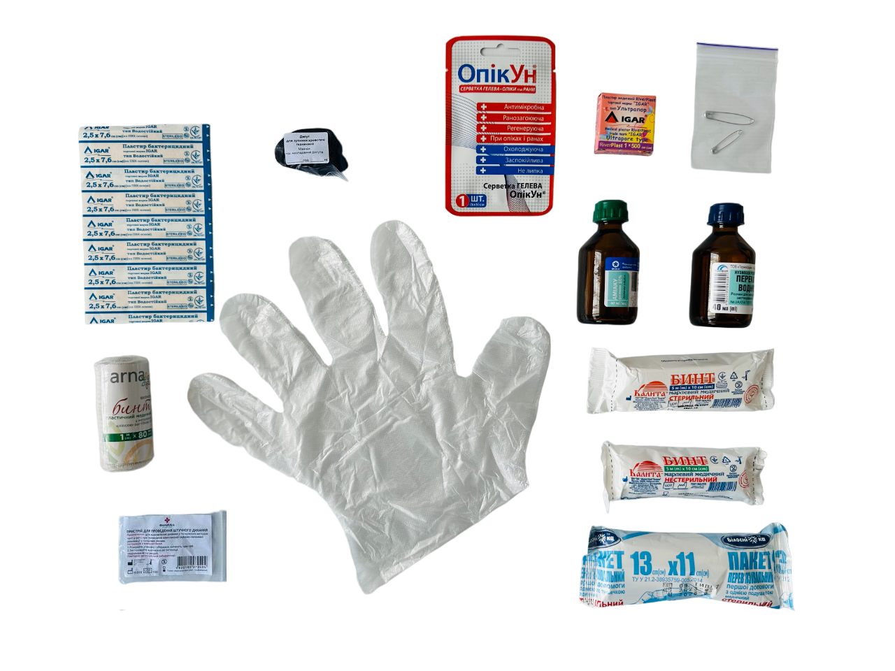 - Пакет перев'язувальний стерильний (13см х 11см) - 1 шт