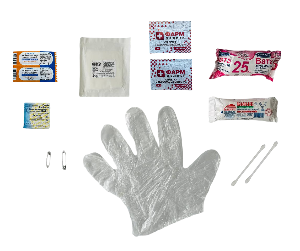 - Бинт нестерильний (5м х 10см) - 1 шт