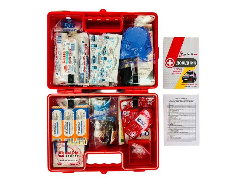 Аптечка медична для «HoReCa» (02-099-П) Poputchik згідно ТУ пластиковий футляр внесена до Державного Реєстру Держлікслужби.