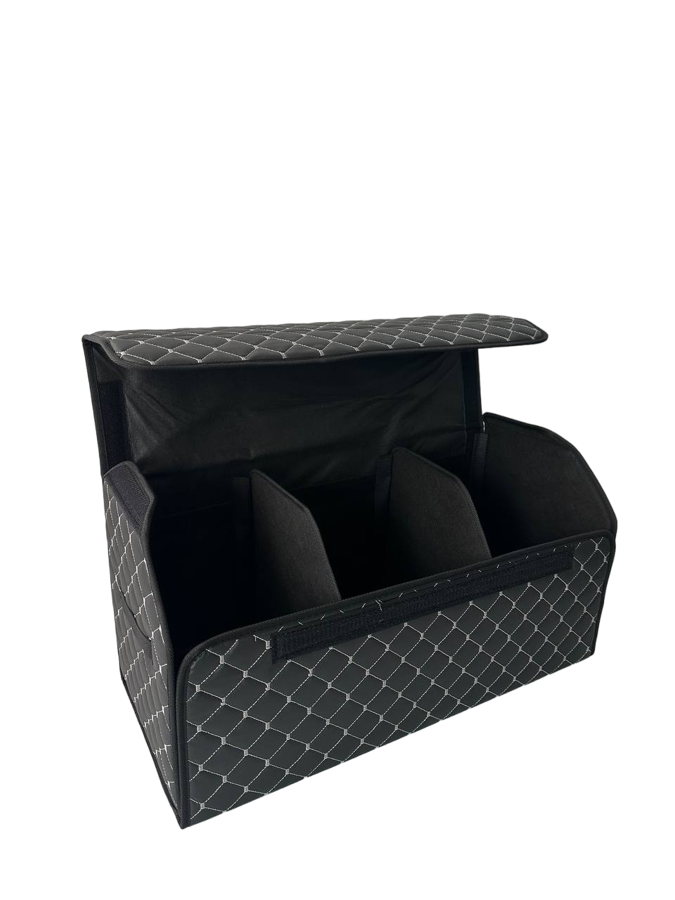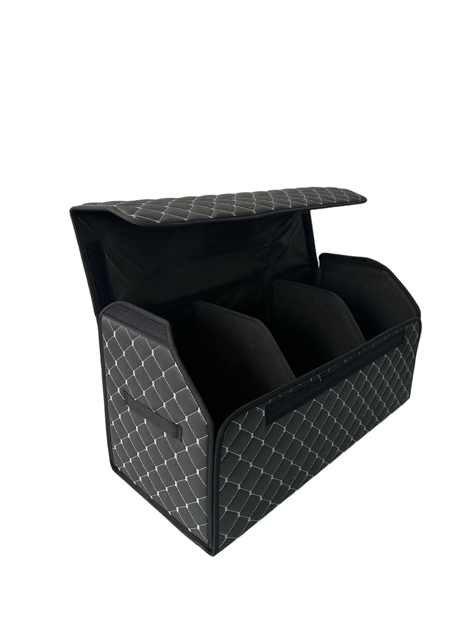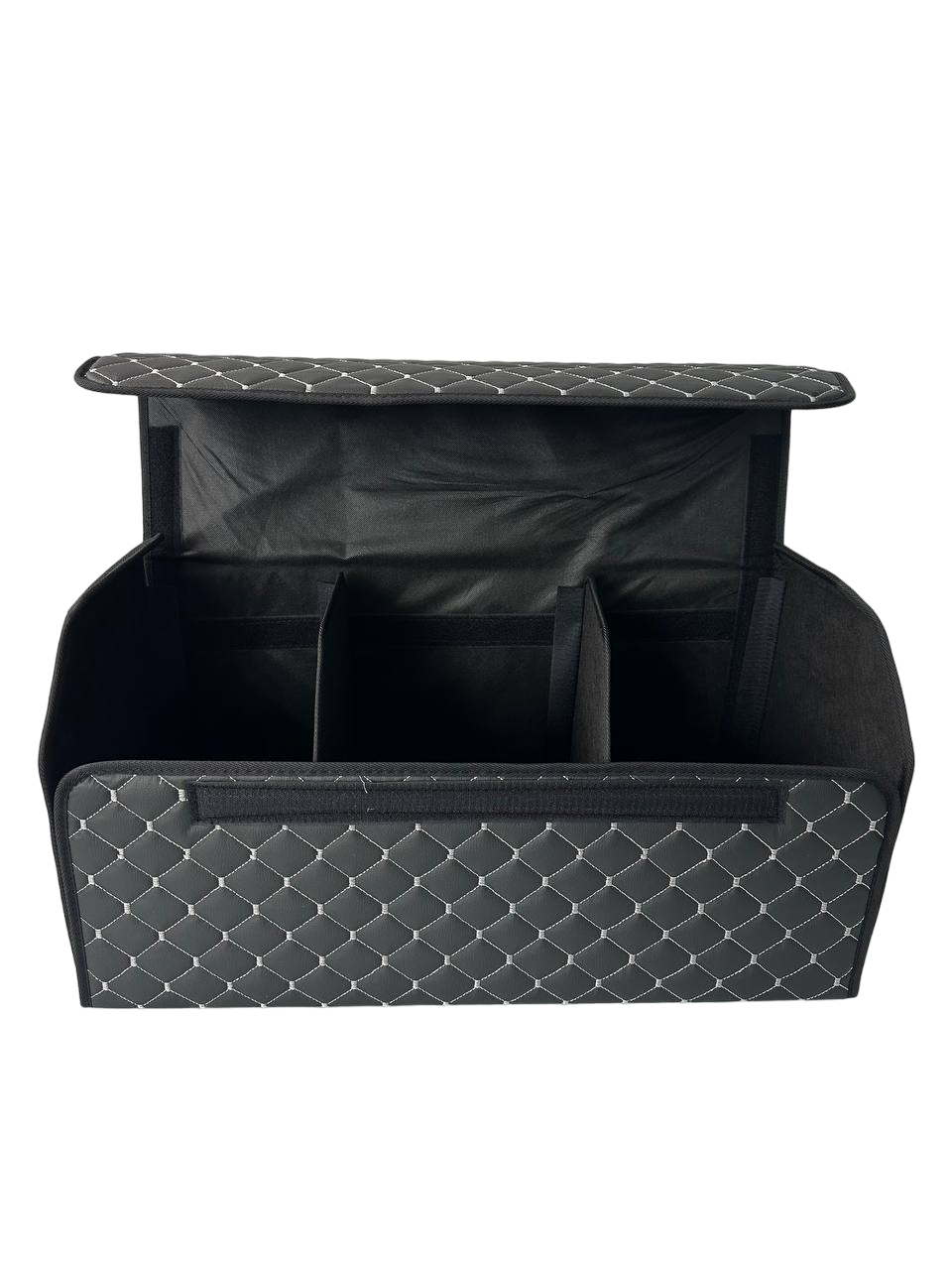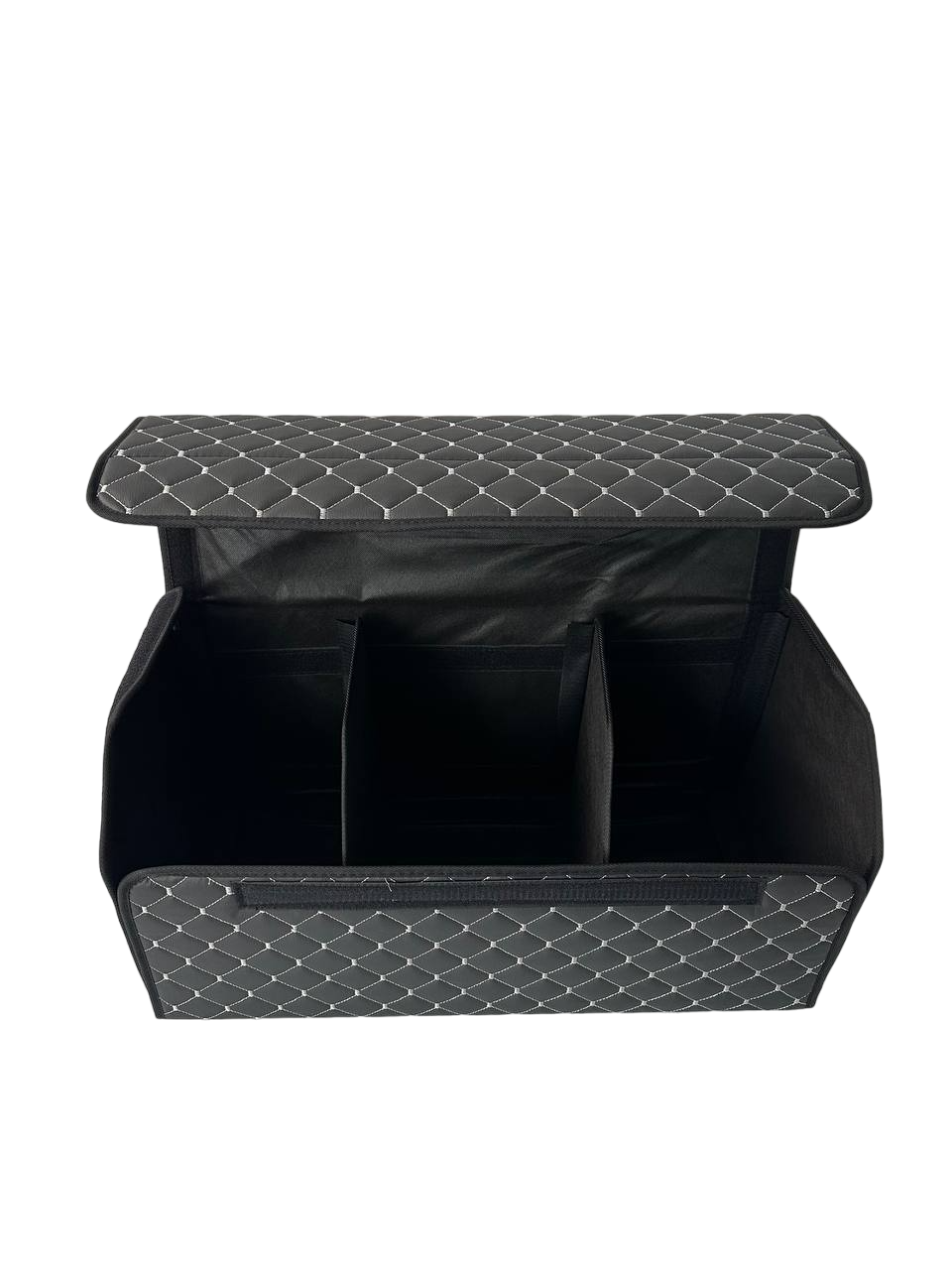 Автомобільний органайзер XL з екошкіри у багажник 65х32х32 см чорний з сірою прошивкою (03-141-1Д)