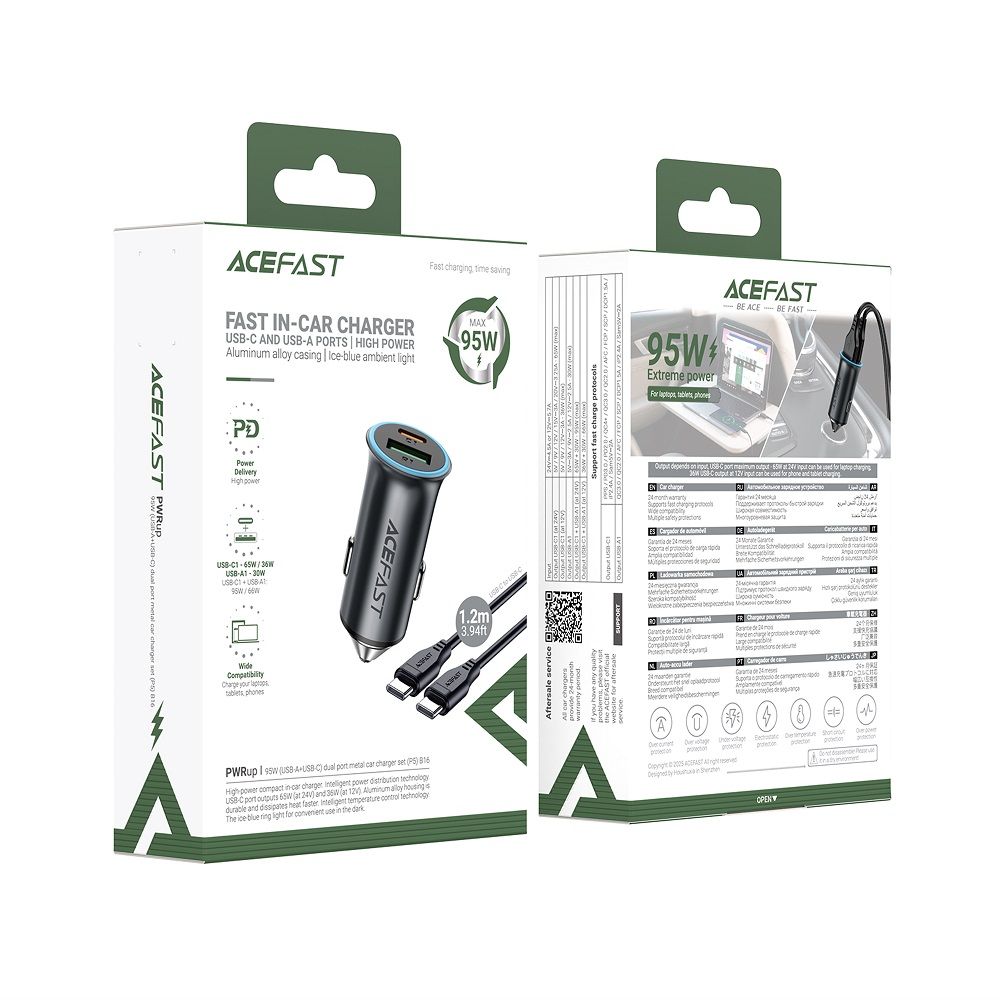 Автомобільний зарядний пристрій ACEFAST B16 95W (USB-A+USB-C) dual port metal car charger set (P5) Metal Gray (6974316285304)
