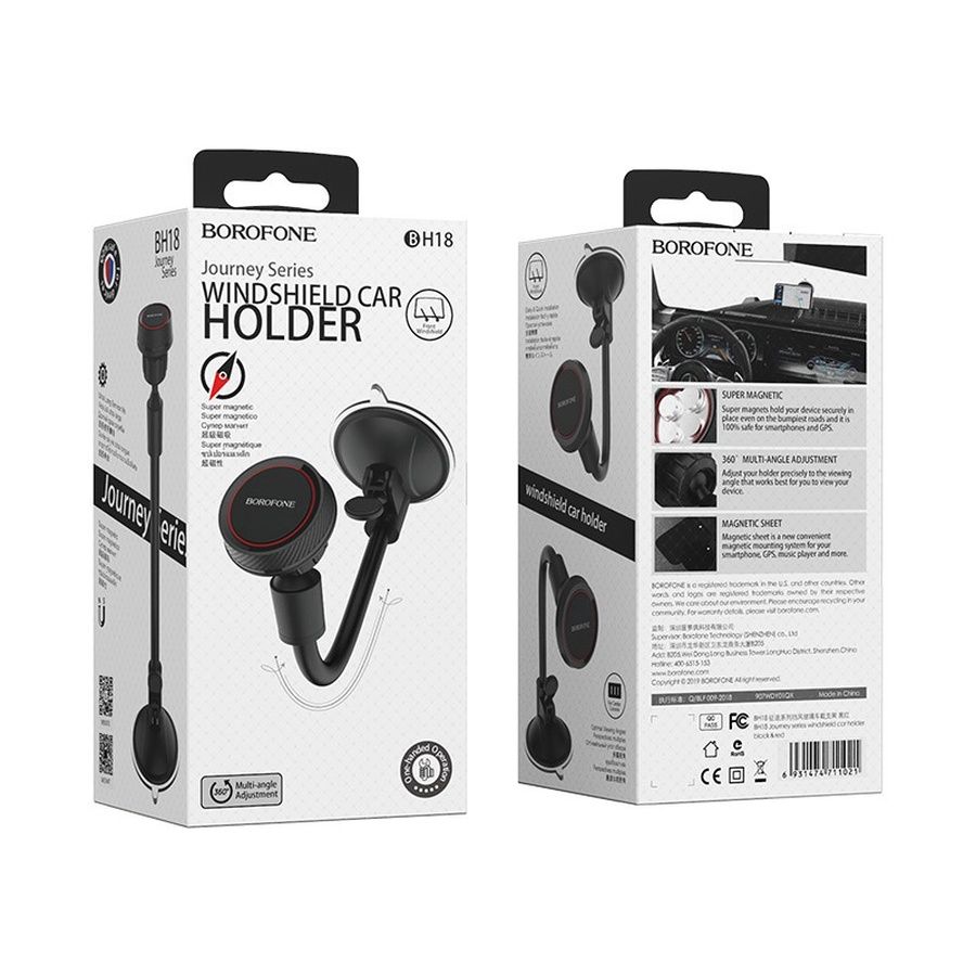 Автодержатель Borofone BH18 Journey Series - корисний аксесуар для водіїв, які часто використовують смартфони в авто. Шарнірне кріплення дозволяє регулювати положення телефону навколо своєї осі. Зручна гнучка, і в той же час пружна, ніжка пристрою, що має довжину 16 см, допоможе ще більш комфортно розташувати закріплений в ньому гаджет. Модель виконана в оригінальному дизайні, з елементами з приємною на дотик текстурою, що імітує покриття з карбонового волокна. Тримач виготовлений з високоякісного пластику, який відмінно переносить щоденні навантаження. Фіксація телефону на тримачі здійснюється за допомогою металевої пластини на зворотному боці задньої кришки телефону або під чохлом. Потужний магніт не робить шкоди смартфонам і не впливає на їх працездатність. Пристрій кріпиться за допомогою присоски на лобове скло або торпедо автомобіля. Комплектується двома металевими пластинами.